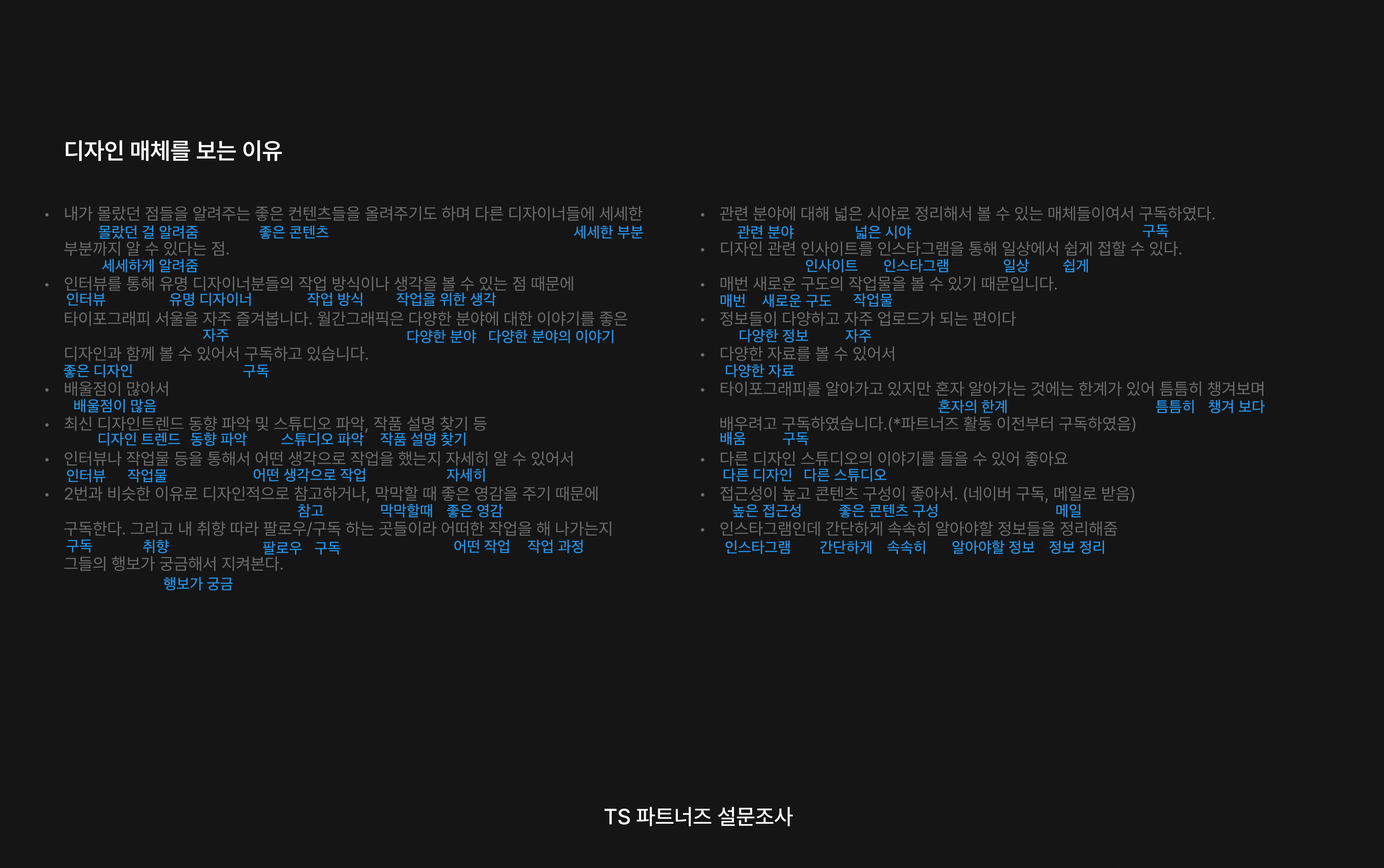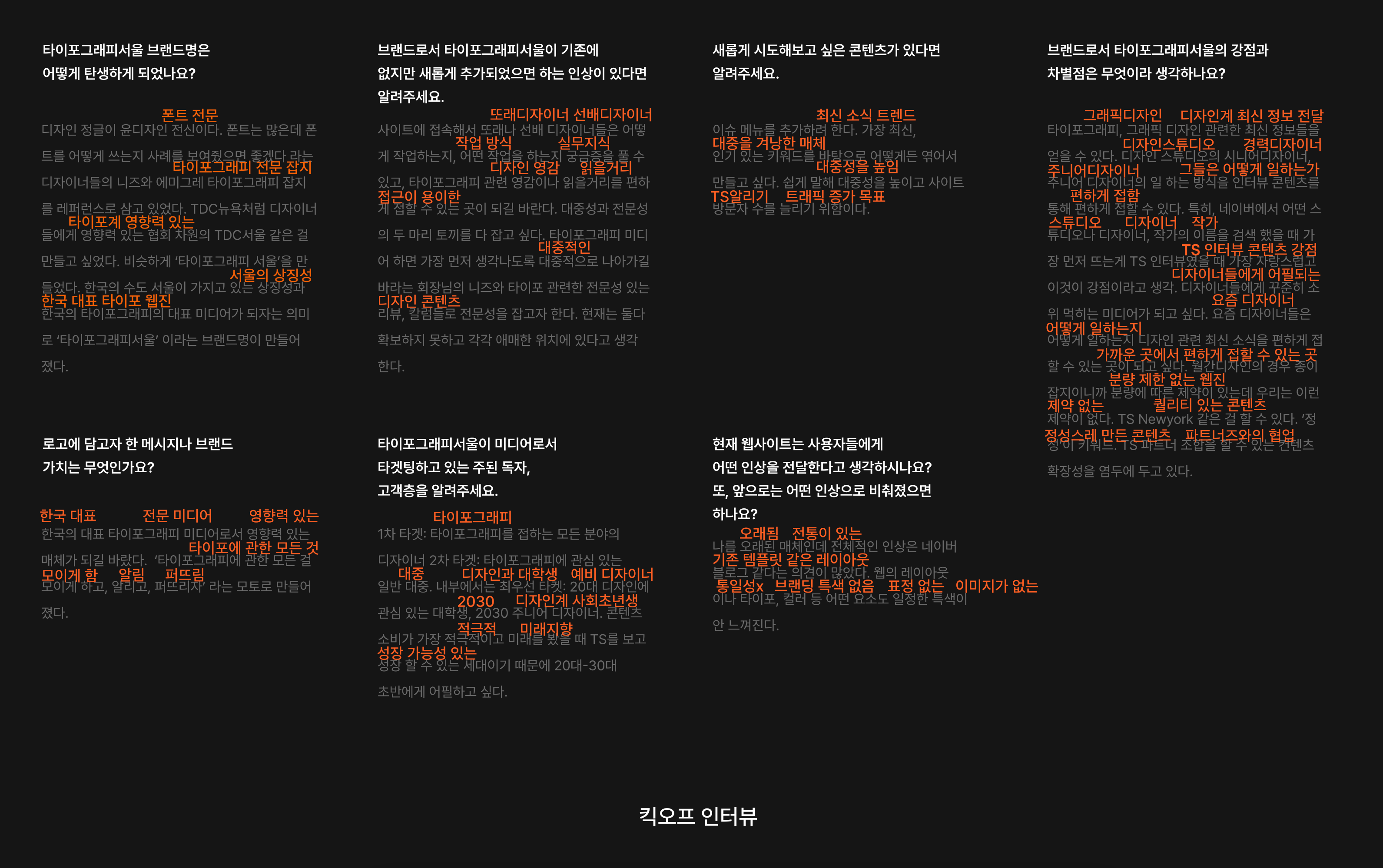 매뉴얼 그래픽스: “『타이포그래피 서울』, 줄여서 TS라는 매체명 또는 브랜드의 인지도는 어떻다고 보나?”