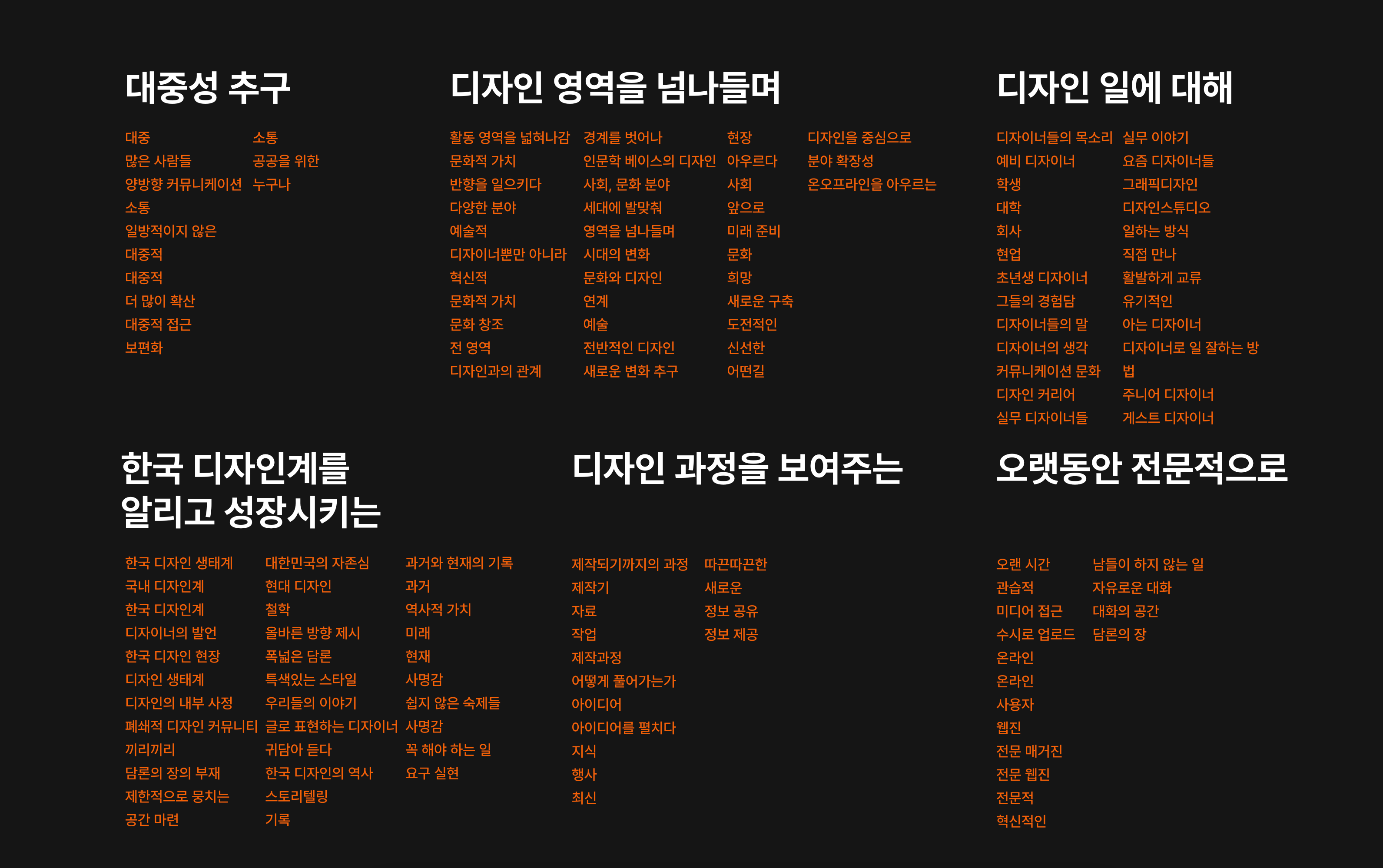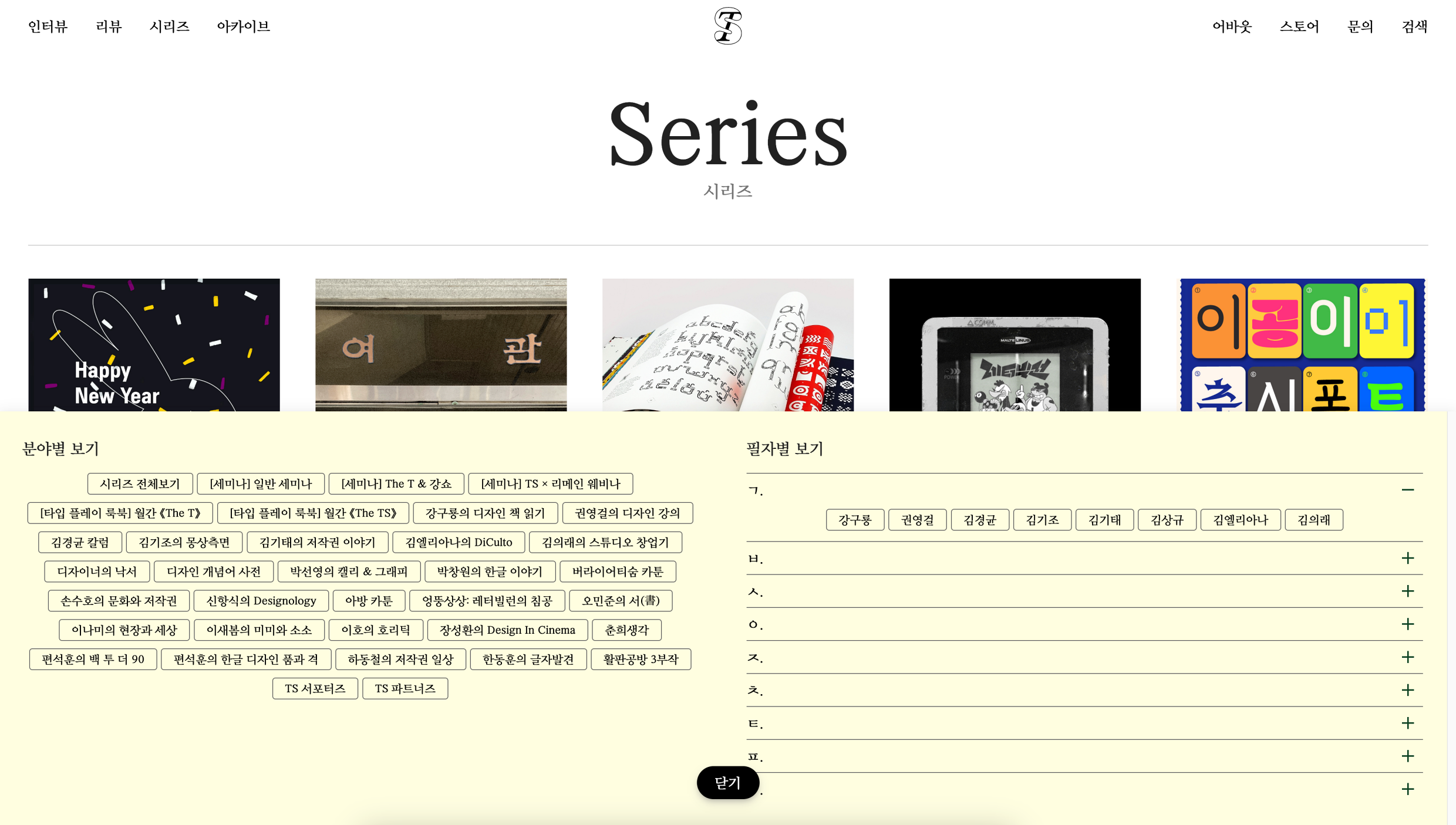 ❷ 인터뷰이 및 시리즈(연재 칼럼) 필자별 검색 기능 강화: 인물이 특정되는 콘텐츠들이 많은데 인명 색인이 없어 찾아 보기 힘들다.