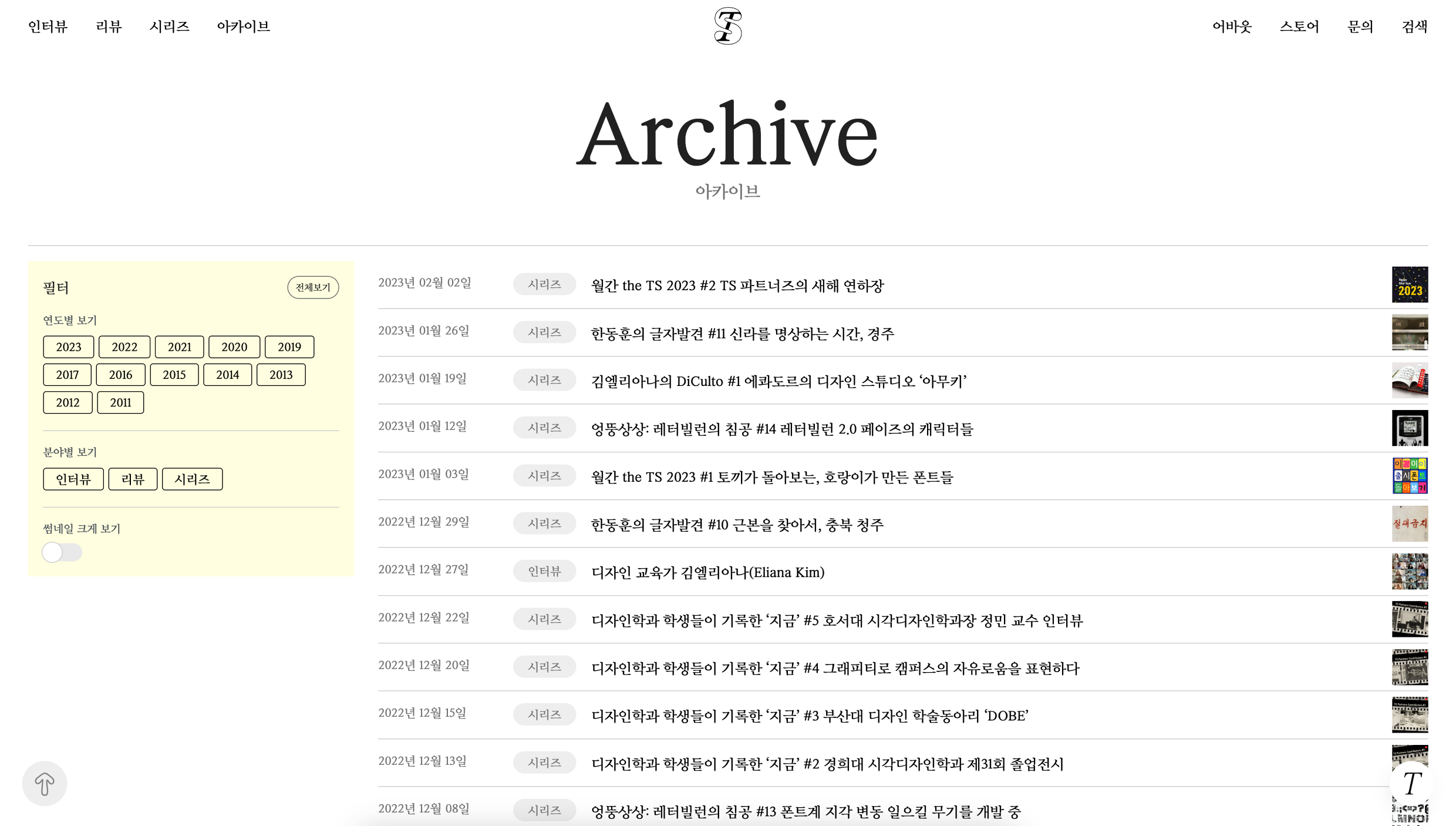 그래서 가장 안전한 방식을 택했다. TS 운영진이 수작업으로 한 건 한 건 1,500건가량을 새 사이트에 재업로드(재발행)하기. 2022년 10월부터 이 작업에 돌입했고, 사이트 오픈이 목전이던 2023년 1월 초순에야 끝마쳤다. TS 발행사 윤디자인그룹의 인턴 직원들, 그리고 아르바이트 작업자의 공조 덕에 가까스로 기한을 맞출 수 있었다.