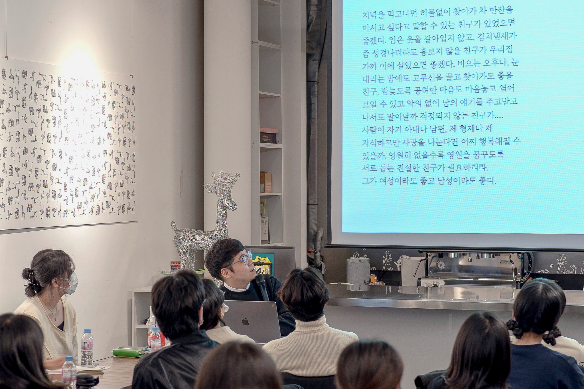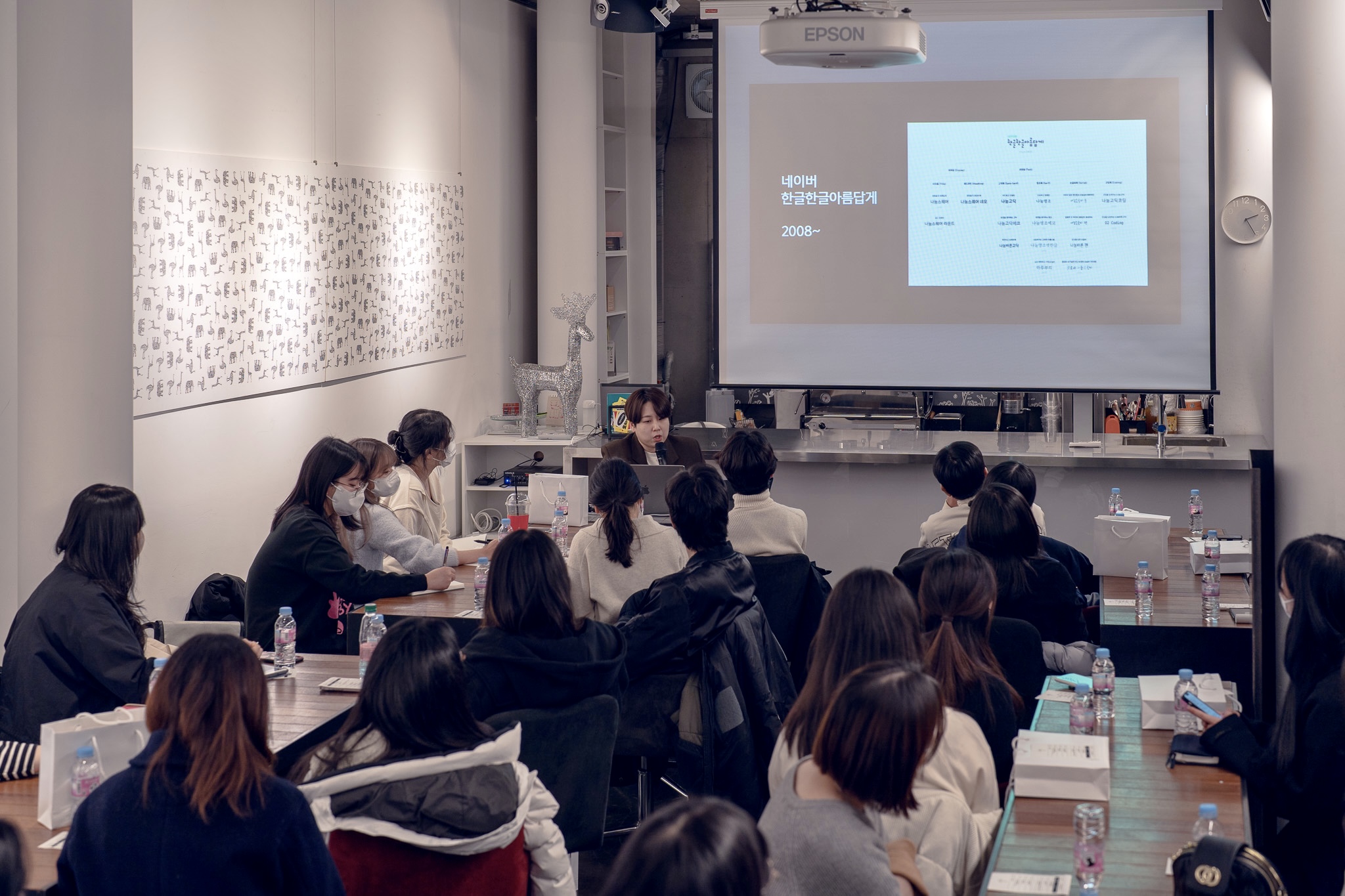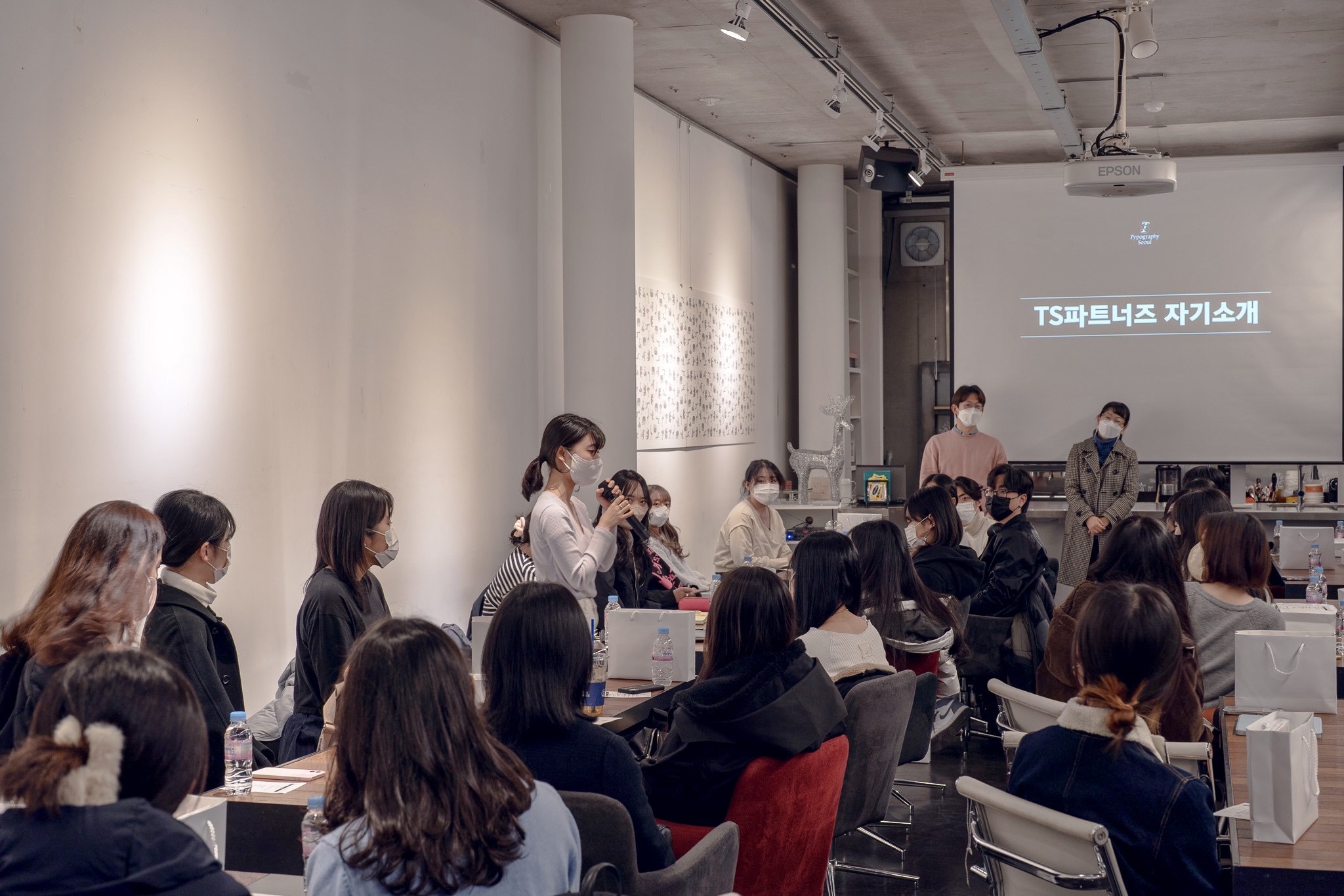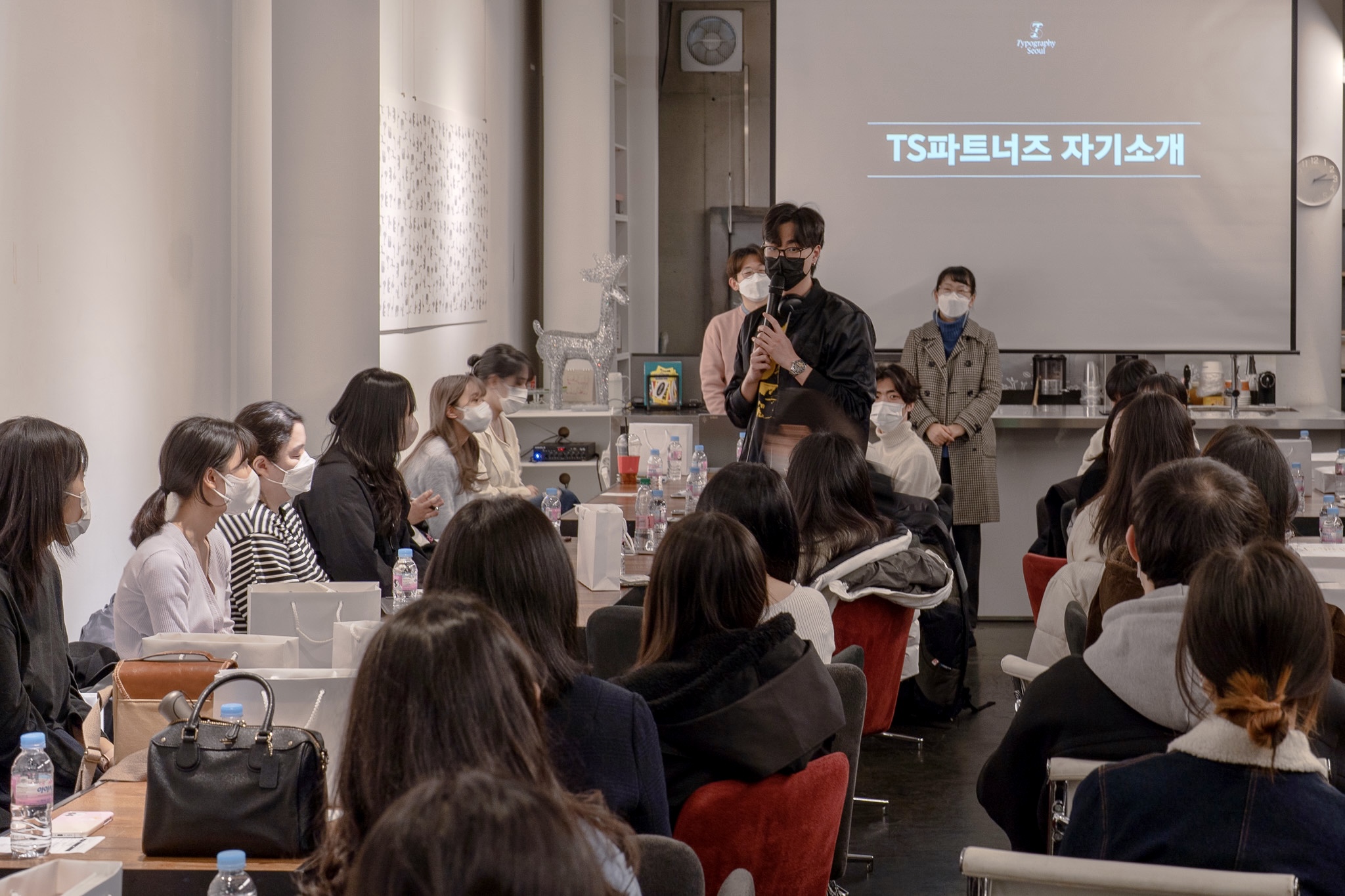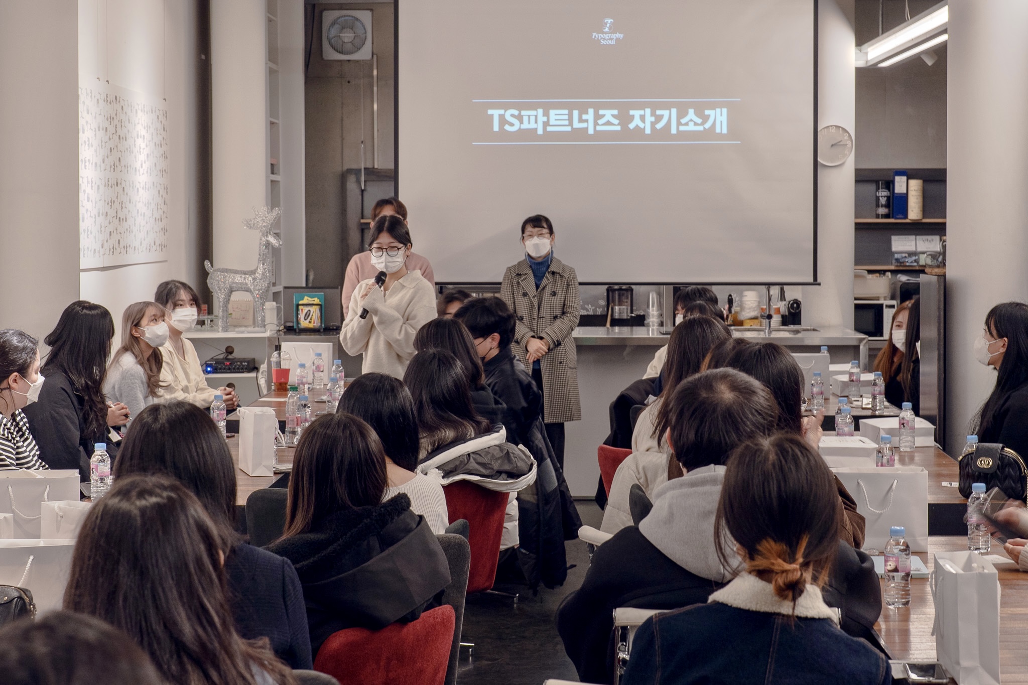 만남의 첫 순서는 TS 파트너즈와 TS 운영진의 자기소개. 이어서 윤디자인그룹 TDC(Type Design Center) 소속 이가희·이정은·이찬솔 디자이너의 특강 및 이들과의 질의응답 시간, 서체 관련 설문지 작성, 기념 촬영 등 순서로 약 세 시간 동안 행사를 진행했습니다.