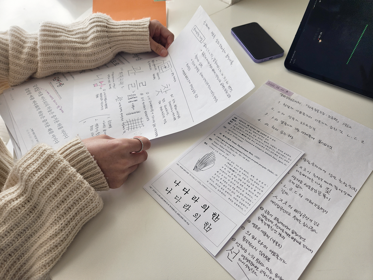가희 아까 문학적이라는 것에서 이어지는데 모조지라는 키워드도 있었다고 하니까. 나중에 두께가 확장되고 나서 모조지나 다른 종이에 별색이나 형압, 박 등을 추가해서 인쇄물에 활용해도 너무 좋겠다. 왠지 모르겠지만 난 목선담을 계속 어떤 물성과 연관 짓고 싶어 하는 것 같아.