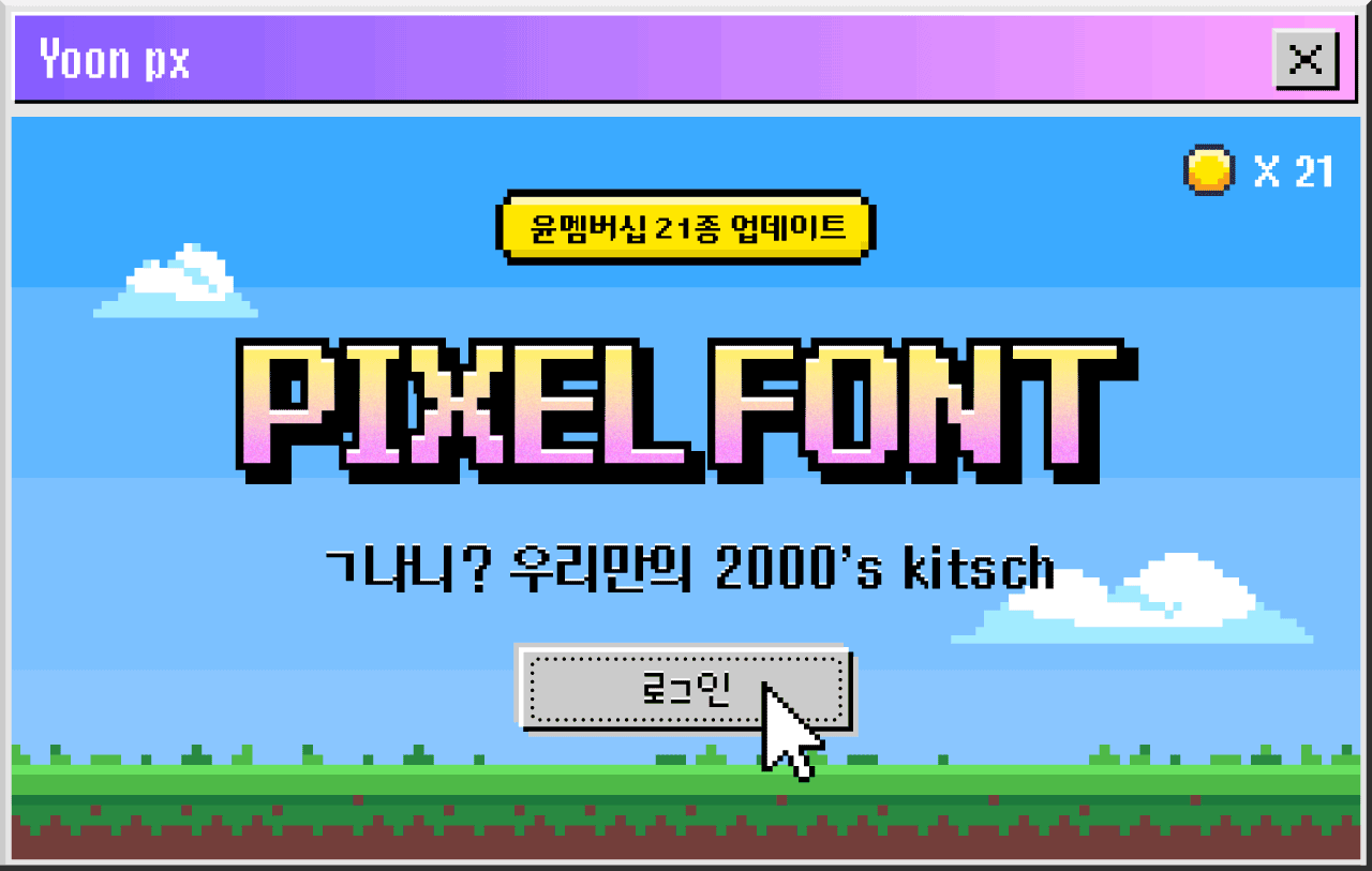 복구된 사진첩으로 소환된 우리 사이처럼, 윤디자인의 시간과 이를 보고 쓰는 여러분의 시간도 2000년대로 되돌려주는 마법 같은 폰트를 소개합니다. 익숙한 듯 새로운 『픽셀 폰트』 21종이 출시되어 폰코(font.co.kr) 윤멤버십에 업데이트되었습니다.