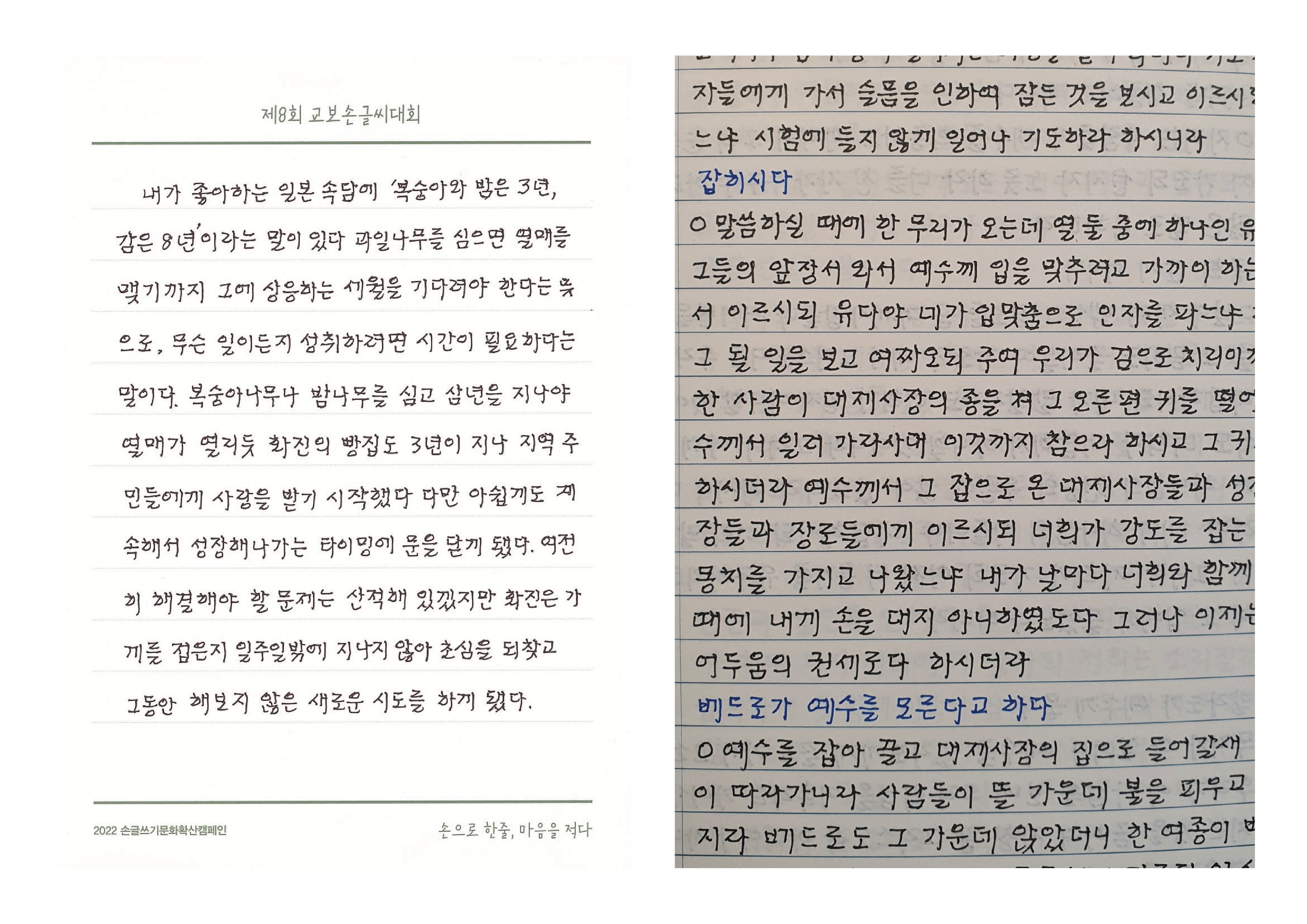 개성 있고 단정한 펜글씨 「교보 손글씨 2022 김혜남」