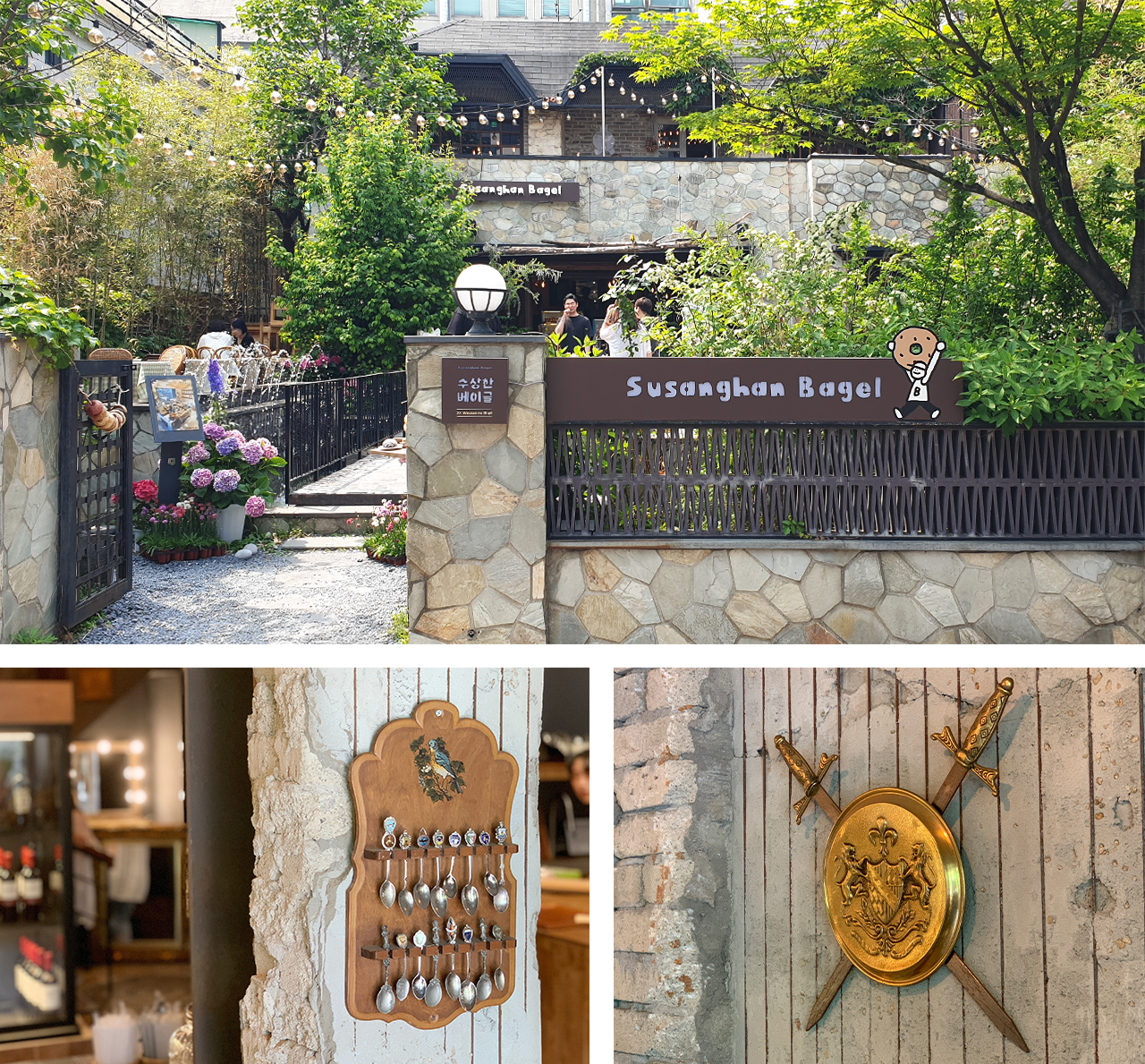 기사의맹세에 어울리는 중세 유럽의 느낌이 나는 곳을 찾다가 선택했다. 현재의 베이글 가게로 오픈한 날부터 성업하고 있는데, 이 건물은 레스토랑과 스튜디오 등 업종이 다양하게 바뀌면서도 외관은 크게 바뀌지 않고 늘 이 자리에 있었다. 그 점도 성을 지키는 기사의 모습과 닮은 듯하다.