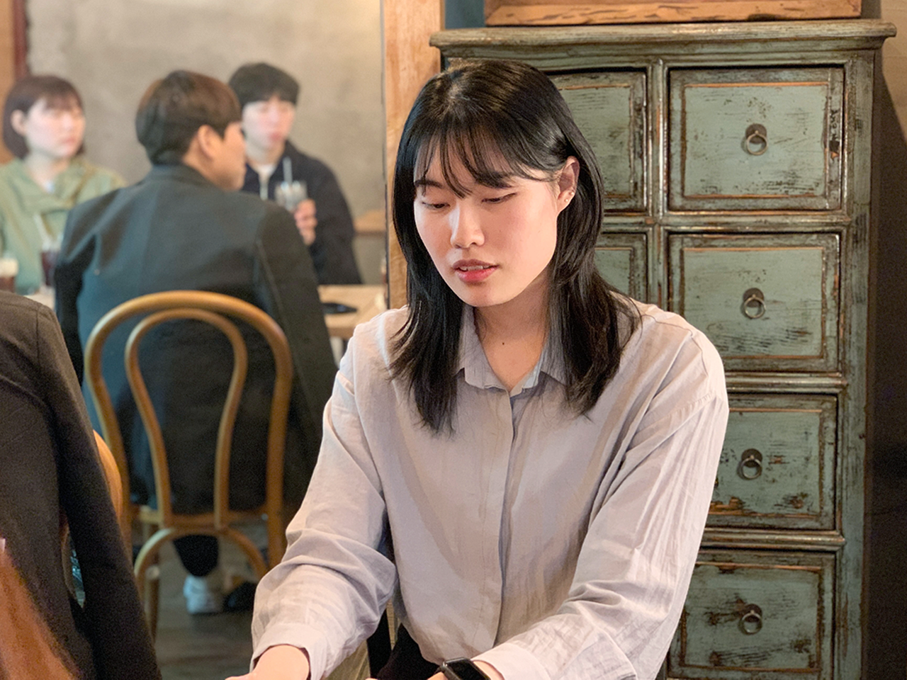 가희 나는 한글을 먼저 봤을 때 중세의 느낌이라 라틴에서도 고전적인 느낌을 주기 위해 글자 자폭의 차이로 큰 특징을 줄 거로 예측했거든. 근데 내 예상을 빗나가서 좀 더 관심 있게 보게 되더라고. 그럼, 마음에 드는 알파벳은 어떤 거야?