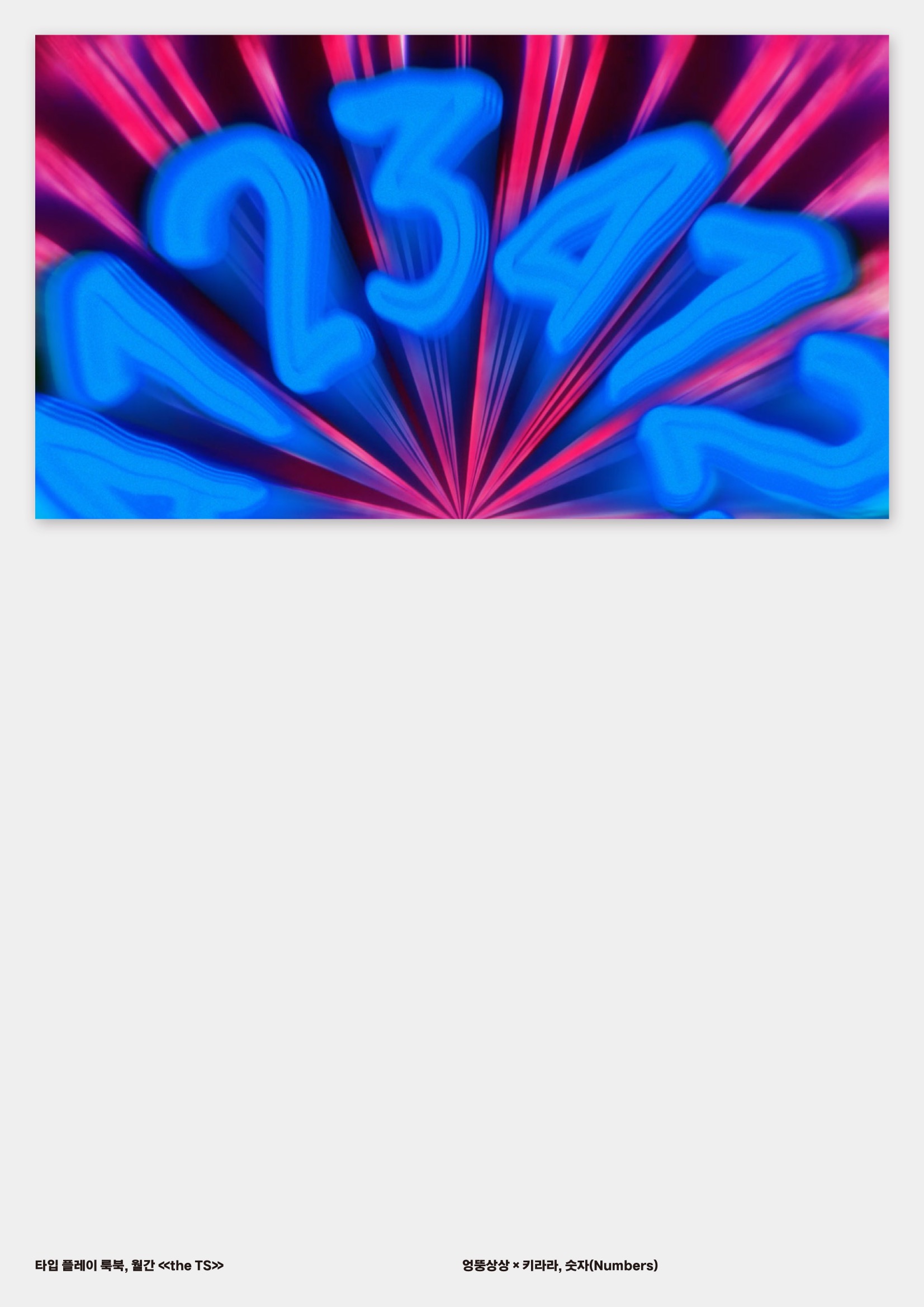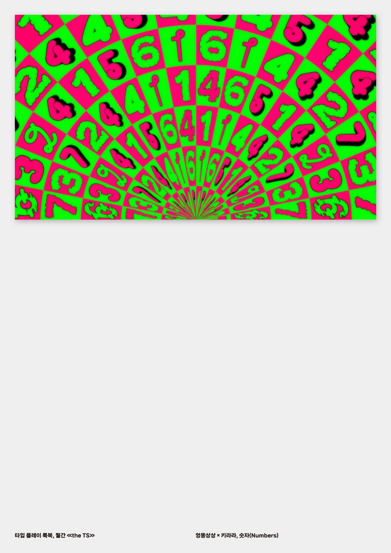 뮤지션 키라라와 함께 선보인 「숫자」 뮤직 비디오는 또 하나의 MTV 오마주라 할 수 있다. 우리는 이번 작업을 ‘뮤직 & 폰트 비디오’라 부른다. 귀에 잘 들려야 하는 음원이 눈까지 즐겁게 하는 뮤직 비디오로 확장되었듯, 잘 읽혀야 하는 OTF 파일을 ‘뮤직 & 폰트 비디오’로 구현한 것이다.