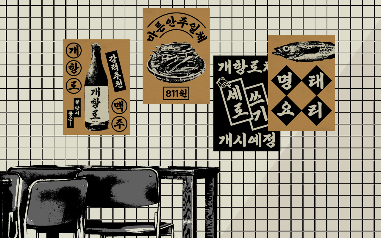 격랑의 역사가 고스란히 담긴 개항로 서체는 오랜 시간 동안 그 자리를 지켜온 개항로의 노포들처럼 거칠고 강인하면서도 꾸밈없이 멋스럽습니다. 개항로 서체라는 새로운 도구를 얻은 〈개항로 프로젝트〉가 로컬 브랜딩을 넘어 로컬 타이포 브랜딩으로, 지역의 정체성을 더 견고히 표현하고 더 단단한 로컬의 힘을 보여주기를 바랍니다.