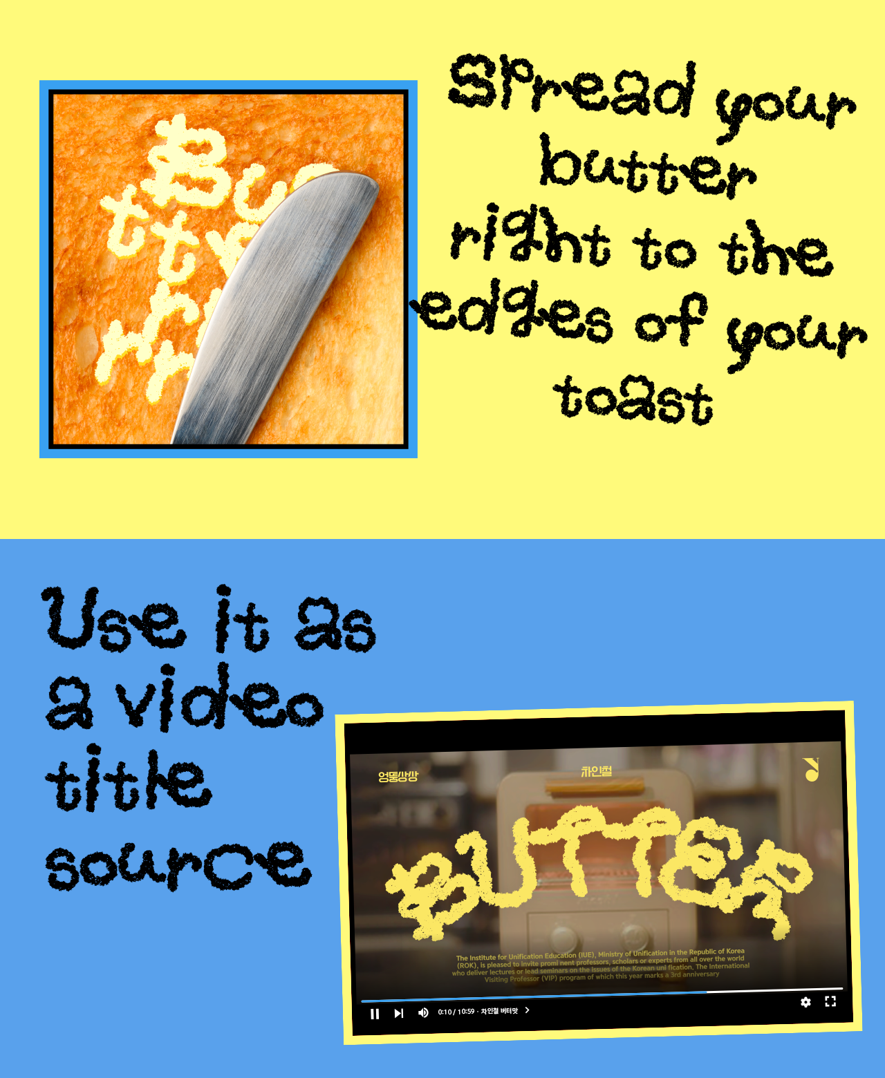 차인철 버터맛은 차인철 작가가 Z세대에게 선물하는 디지털 굿즈입니다. 간단하게는 다꾸할 때 또는 영상 제작이나 개인 굿즈 제작에 활용하기 좋습니다. 그리고 이 폰트를 가지고 차인철 작가는 또 얼마나 멋진 작업물을 선보일지도 기대됩니다.