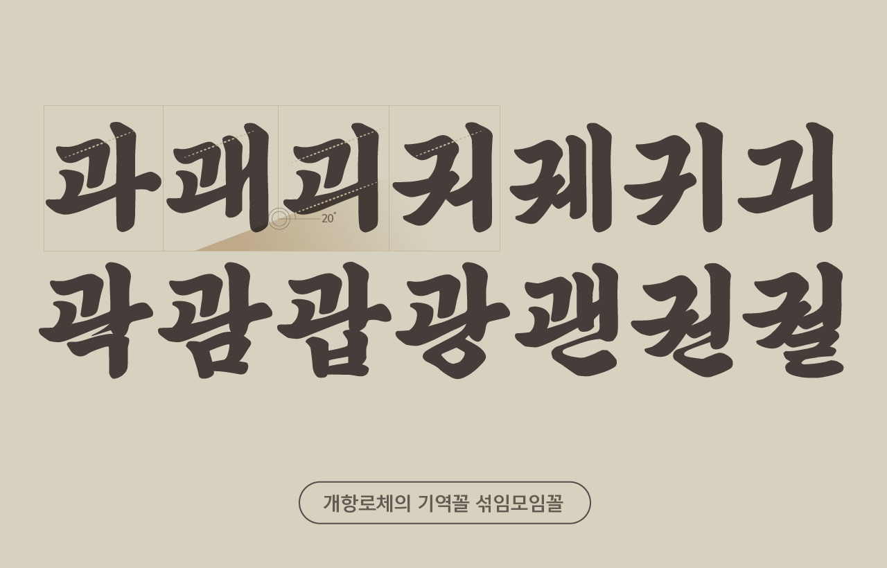 찬솔 나는 이거 작업할 때 나무 위에 깎았다는 속성에 맞췄거든. 원래는 좀 부드럽게 했다가 왼쪽으로 꺾여져 있는 획이 개항로체만의 특성을 나타낼 수 있지 않을까 해서.