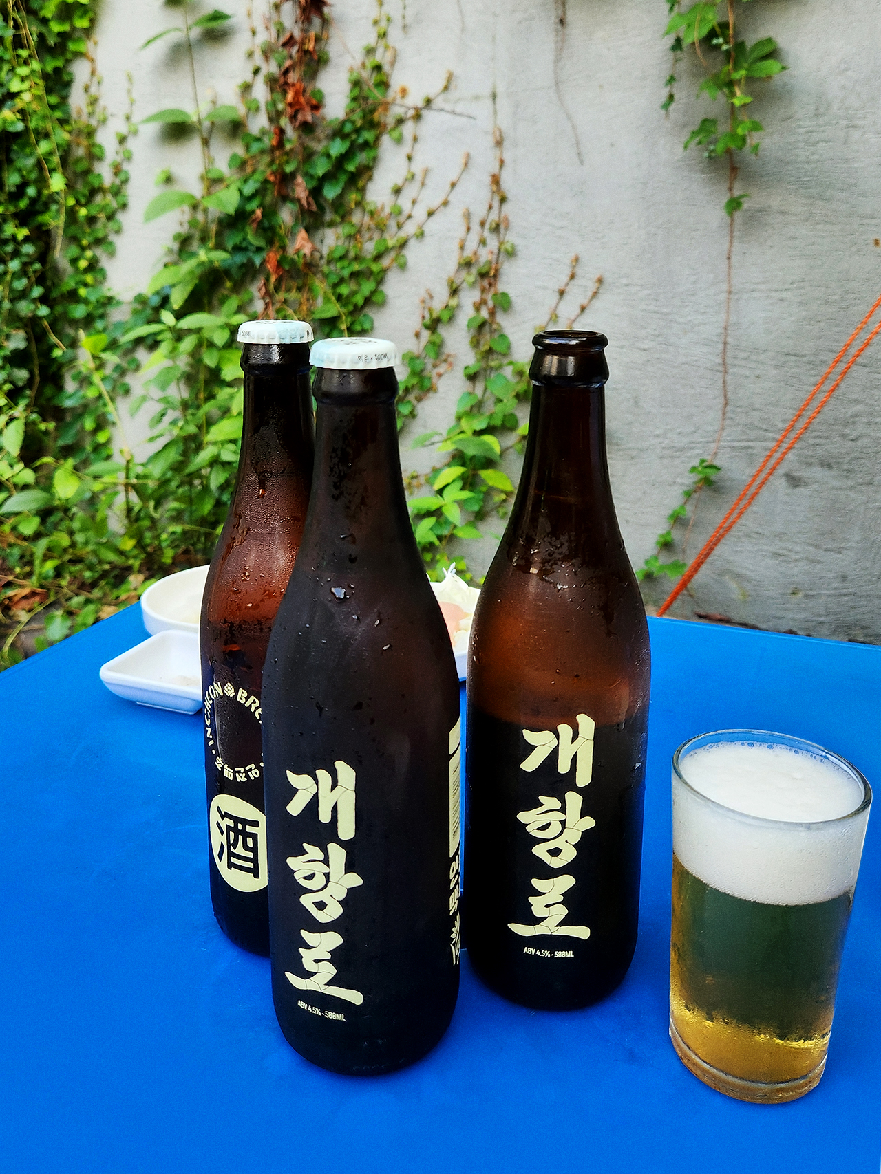 타입나누기가 끝난 후에는 라이트하우스를 나서 개항로 곳곳을 둘러보았는데, 전종원 사장님의 목간판도 어렵지 않게 발견할 수 있었다. 개항로의 작은 잡화 백화점, 개항백화와 소금 창고로 쓰던 잇다스페이스 등을 구경한 후 여름밤에 빠질 수 없는 개항로통닭의 야외 테이블에서 개항로체 출시를 축하하는 뒤풀이를 가졌다. 물론 개항로 맥주와 함께.