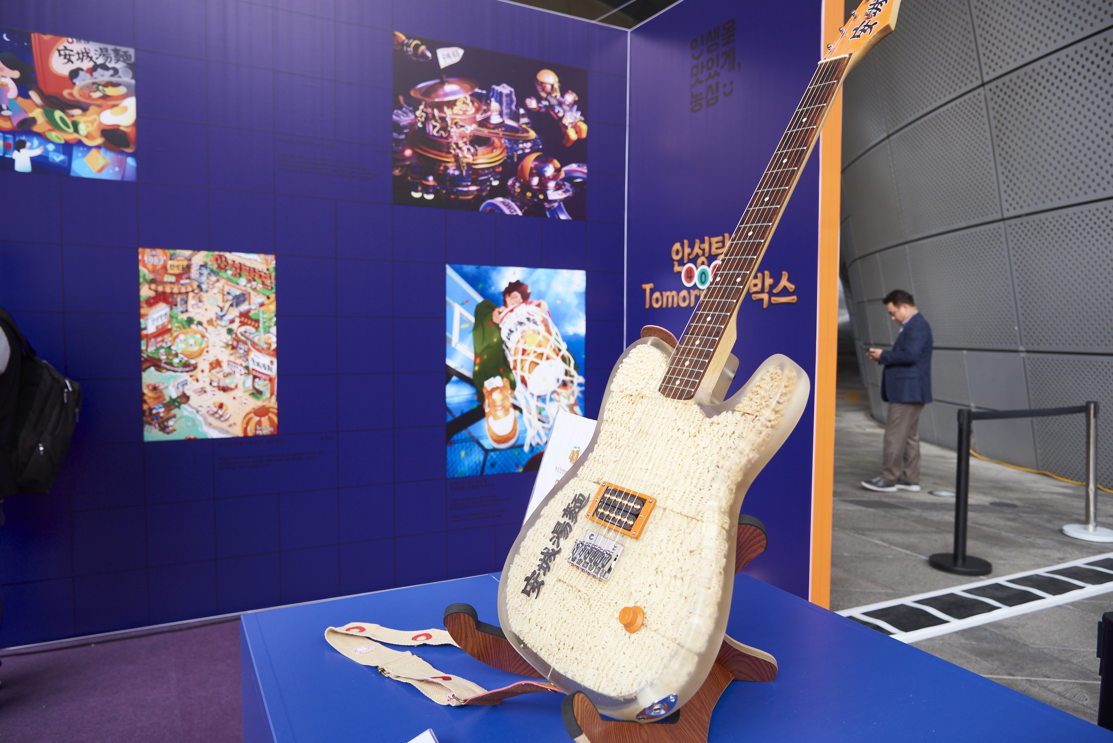 또한 안성탕면 전용서체를 활용하여 여러 신진 아티스트가 제작한 작품을 전시하여 글자가 정보를 전달하는 수단을 넘어 예술로 진화하는 것을 보여주고자 하였죠. 이 밖에도 팝업스토어 현장에서는 안성탕면 모델 강호동의 팬 사인회, 경품을 받을 수 있는 초대형 젓가락질 게임, 포토 부스 등이 운영되어 방문객들의 인기를 끌었습니다.