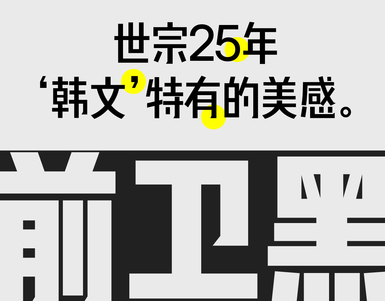 우리말이 중국의 문자와 서로 맞지 않아 만들어진 우리의 문자, 한글. 한자는 한글보다 더 오래된 문자이고, 우리말과 우리글에도 많은 영향을 미쳤습니다. 그런데 이번엔 한글이 중국의 한자로부터 시작하여 중국의 한자를 표현하는 새로운 글꼴이 만들어졌습니다. 바로 「윤체 아방가르드 블랙」입니다.