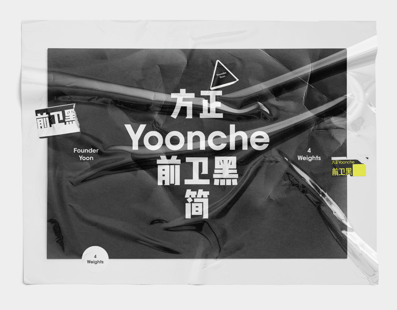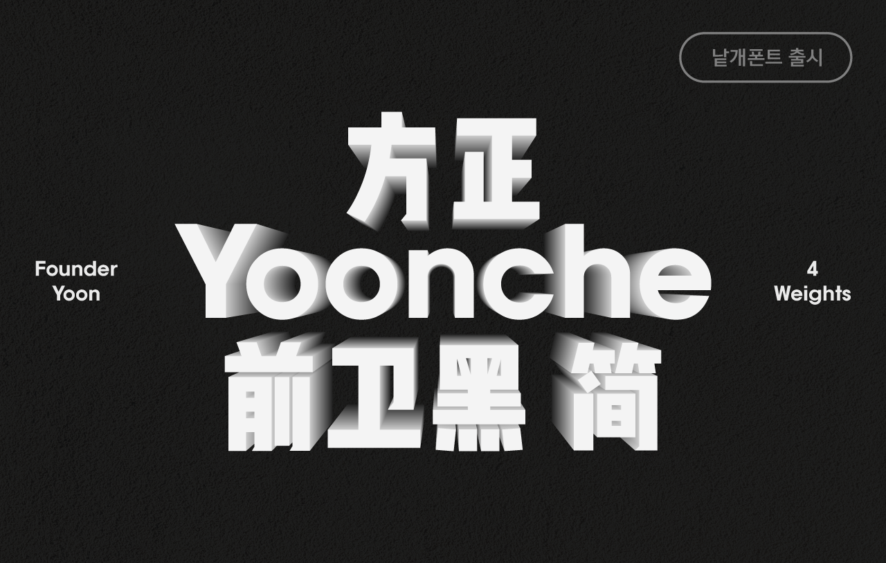 그리고 2023년, 중국의 글꼴 기업 FounderType(方正字库)은 「윤체 아방가르드 블랙」을 개발했습니다. 윤디자인그룹의 윤체를 바탕으로 중국어 간체를 지원하는 4종 굵기의 폰트를 만든 것이죠.