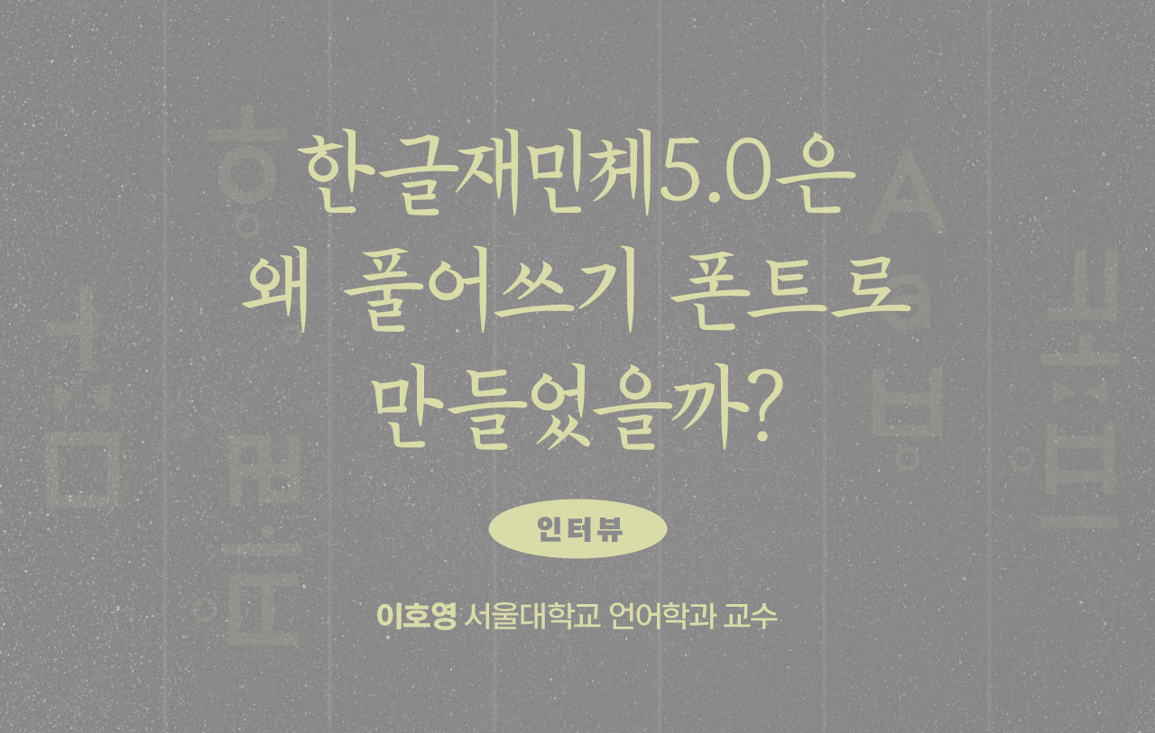 그런데 이 폰트, 조금, 아니 꽤 많이 다릅니다. 기존의 한글재민체와도 우리가 늘 쓰던 한글과도요. 「한글재민체5.0 풀어쓰기 정음체」라는 이름을 보면 어떤 서체인지, 어떤 폰트인지 대략 짐작할 수 있습니다. 그런데 왜 풀어쓰기일까요? 시옷인 듯 시옷 아닌 세모, 작은 동그라미가 달린 기역, 쌍리을과 쌍히읗은 어떻게 만들어진 걸까요? 이 질문에 대한 답을 한글재민체5.0의 풀어쓰기 체계와 문자를 연구·개발한 이호영 교수에게 들어봅니다.