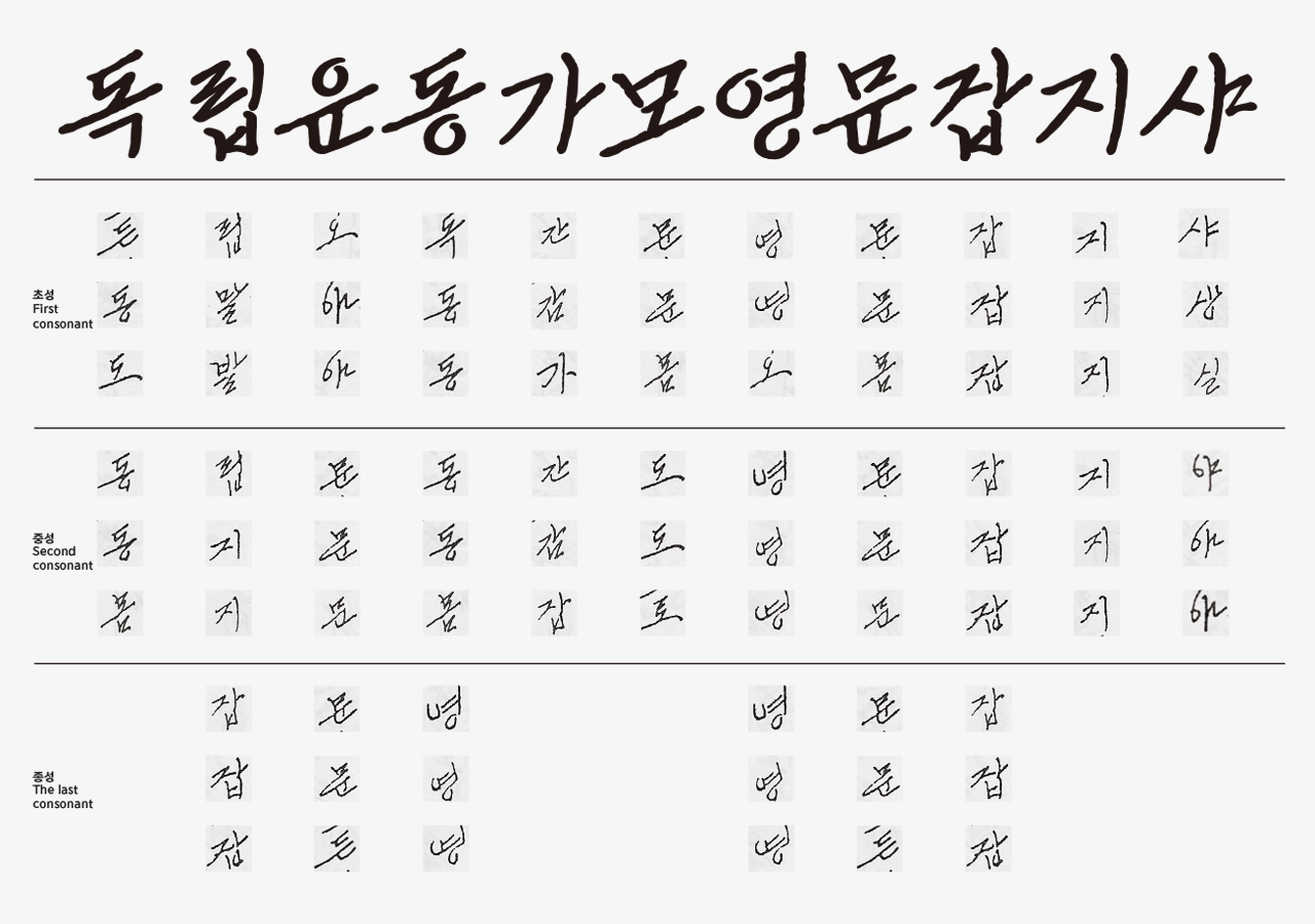 “안창호체는 전체적인 인상은 정체에 가깝지만, 글자 안에 흘림의 요소가 담겨 있어서 속도감도 느껴져요. 특히 ‘ㄹ’은 원래 반듯한 정체 스타일이었다가 흘림체 형태로 수정했는데, 바꾸길 잘한 것 같아요. 아주 마음에 듭니다.”