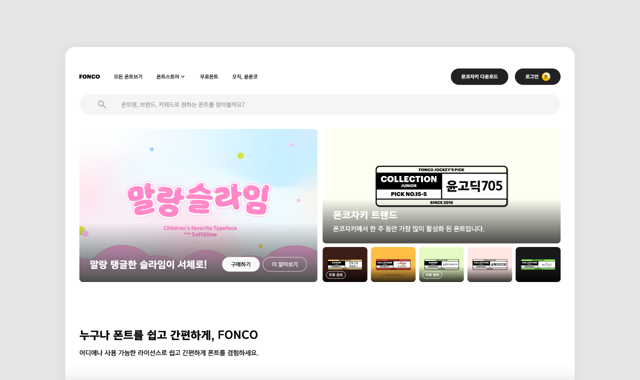 윤디자인에서 운영 중인 폰트 쇼핑몰 폰코(font.co.kr)는 사용자 여러분의 더욱 편리한 폰트 사용 환경을 위해,