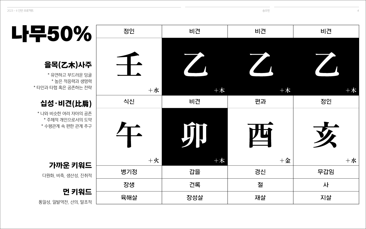 예형: 근데 돌이켜보면 인턴과제 주제가 ‘나’였잖아! 그래서 송우빈스러운 폰트가 나왔네!