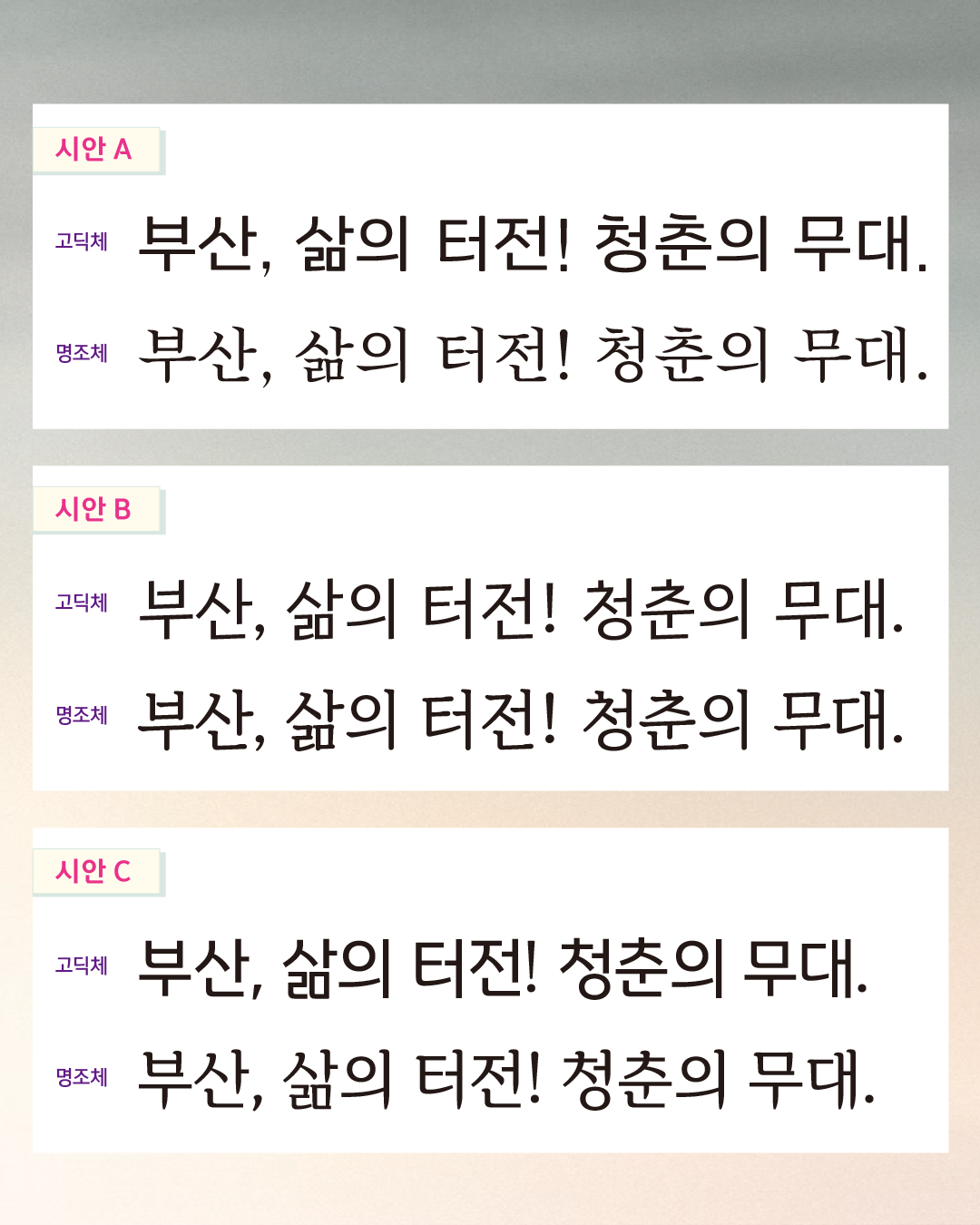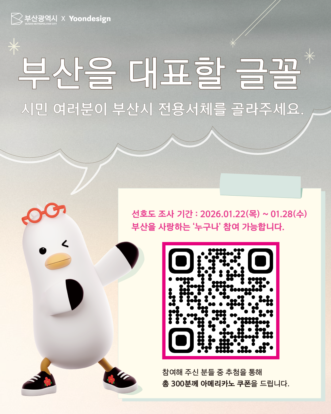 👉 부산광역시 도시브랜드 전용서체 선호도 조사 참여하기 (클릭)