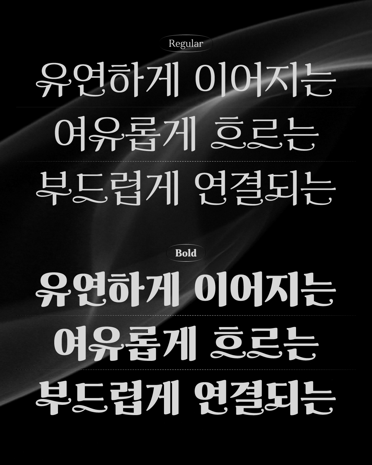 ‘요울루 Regular’는 자연스럽게 흐르는 획과 리듬감 있는 분위기로,