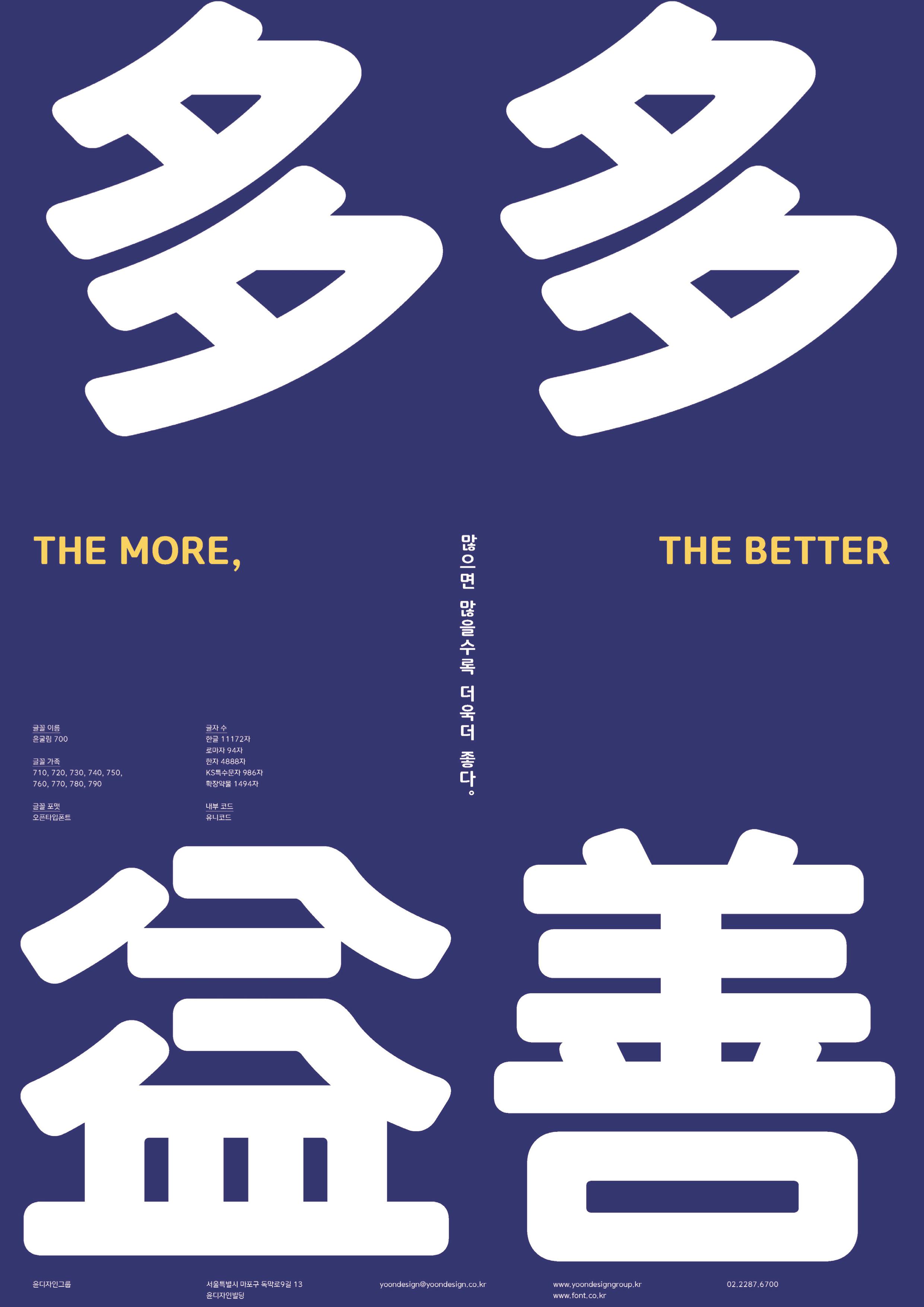 윤고딕 700번대의 장점과 특징을 고스란히 이어받았다. ”