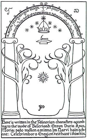 톨킨은 또한 일러스트레이터이자 캘리그래퍼이기도 했습니다. 『호빗』과 『반지의 제왕』 3부작에는 그가 직접 그린 삽화, 직접 쓴 손글씨가 본문 곳곳에 스며 있어요. 가장 대표적인 것이 『반지의 제왕』 속 ‘절대반지’에 새겨진 글귀(소설 배경인 ‘중간계’의 고대 문자)입니다. 피터 잭슨 감독의 실사판 영화에도 등장한 바 있죠.