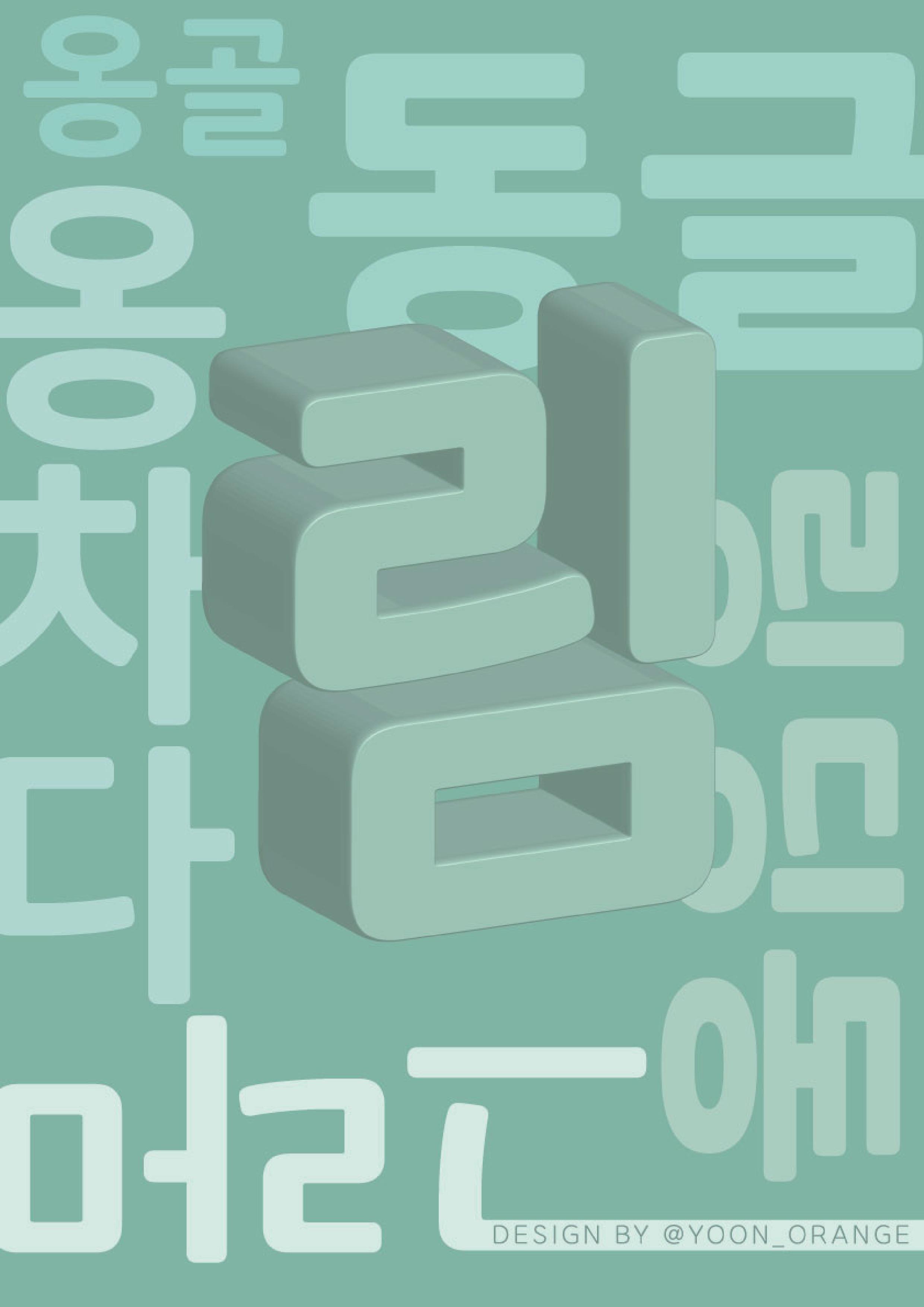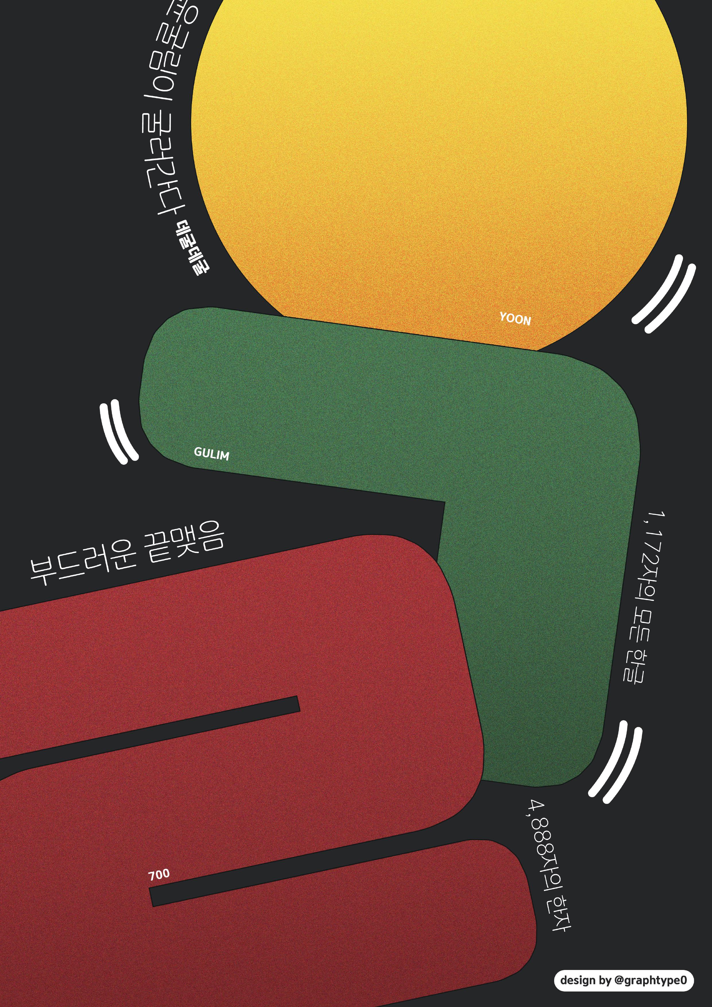 윤디자인그룹의 서체 ‘윤굴림’을 테마로 꾸며졌던 월간《the T》 과월호. 윤디자인그룹 소속 디자이너들의 다양한 ‘윤굴림’ 타입플레이 작업들을 소개했었는데요. 이번 호에서는 TS파트너즈의 작업들을 선보입니다. 정해진 룰 없이, 누군가의 ‘컨펌’ 또한 없이, TS파트너즈 각자의 분방한 해석과 손놀림이 100퍼센트 허용된 결과물들이죠.
