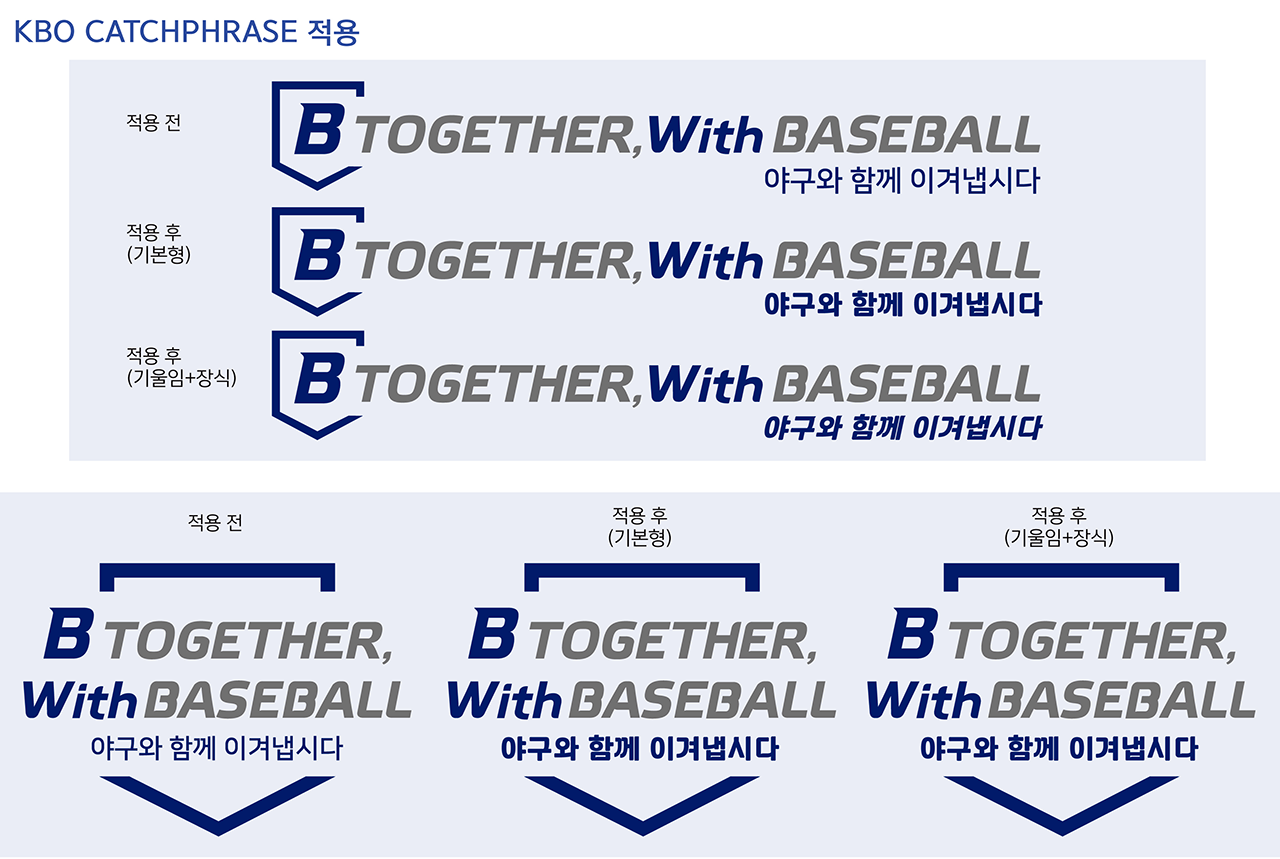 「KBO체」 적용 전과 후의 KBO 캐치프레이즈