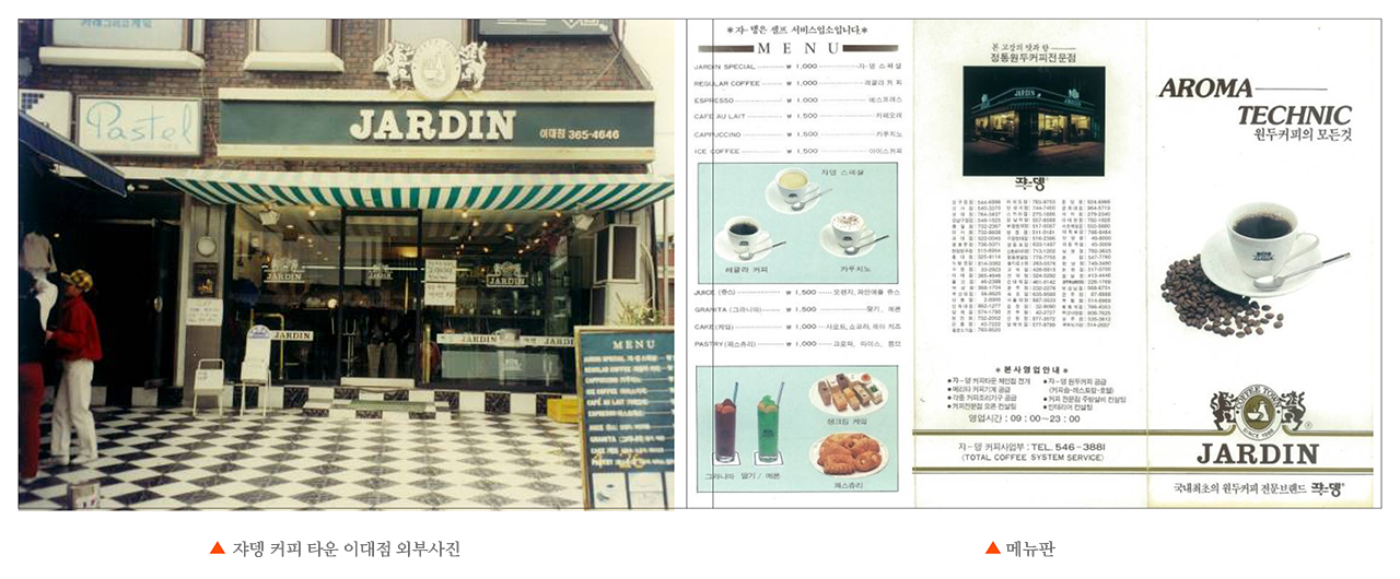 제가 선택한 브랜드는 '쟈뎅'입니다. 저도 이번에 처음으로 쟈뎅에 대해 깊게 알아보게 되어서 함께 공유하고자 잠깐 소개 먼저 할게요. 쟈뎅은 1988년에 우리나라 최초로 원두커피 카페를 만든 브랜드예요. 아마 X세대를 보내신 분들에게는 압구정의 고급스러운 카페로 기억하실 텐데요. 이후 IMF를 겪고 외국 브랜드의 유입으로 예전만큼의 명성은 줄어들었지만, 지금도 커피를 연구하면서 이디야, 투썸, 이마트 등 우리가 흔히 아는 브랜드에 원두를 제공하고 있어요. 또 편의점에서 쉽게 쟈뎅 커피를 만나볼 수 있고요. 너무 쟈뎅 직원 같았나요? ㅎㅎ
