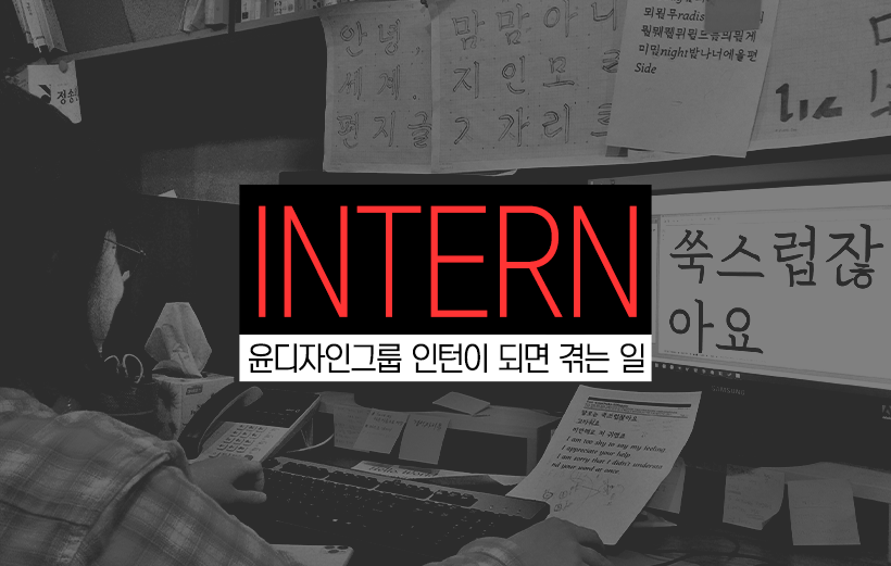 처음이라는 기억은 참 강렬합니다. 윤디자인그룹이라는 첫 회사도 인턴사원들에게 참 의미 있겠죠. 그래서 더 많은 것을 가르쳐주고 싶고, 도와주고 싶고, 함께 성장하고 싶은 마음으로 인턴 교육에 힘쓰고 있습니다. 무엇보다 ‘폰트 디자인’이 다소 생소한 분야이기 때문이죠.