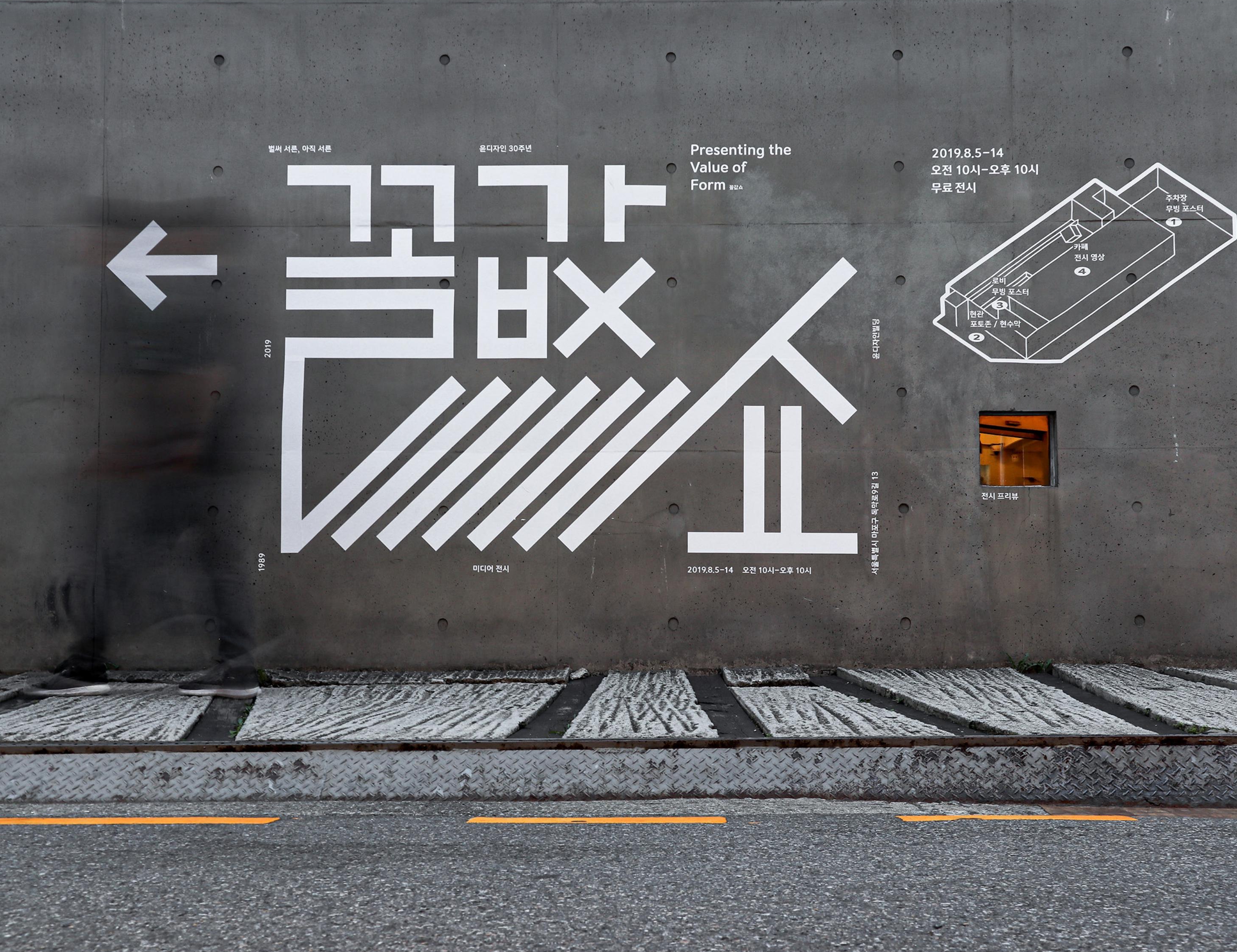 새로운 시각꼴은 두 번의 꼴값쇼 전시에 등장했다. 윤디자인 30주년을 맞아 개최된 꼴값쇼 〈Presenting the Value of Form〉은 ‘폰트를 가장 윤디자인답지 않은 이미지로 생산’하겠다는 목표 아래 영상이라는 새로운 미디어로 송출되었다. 자세히 뜯어보지 않으면 글자인지 파편화된 이미지인지 분별할 수 없을 정도로 글자를 분해하고 확장하고 결합했으며 새로운 시스템으로 조직하기도 했다.