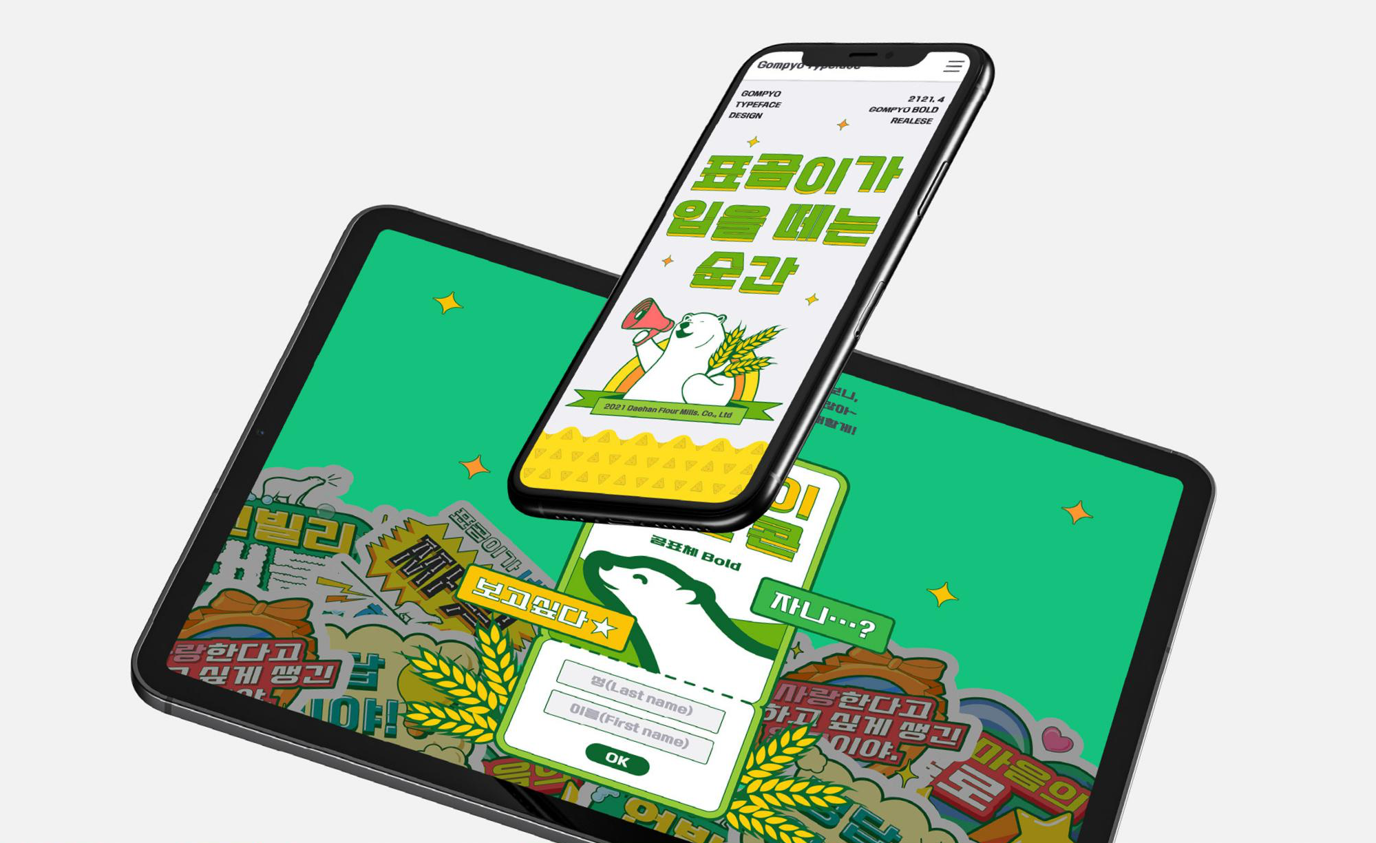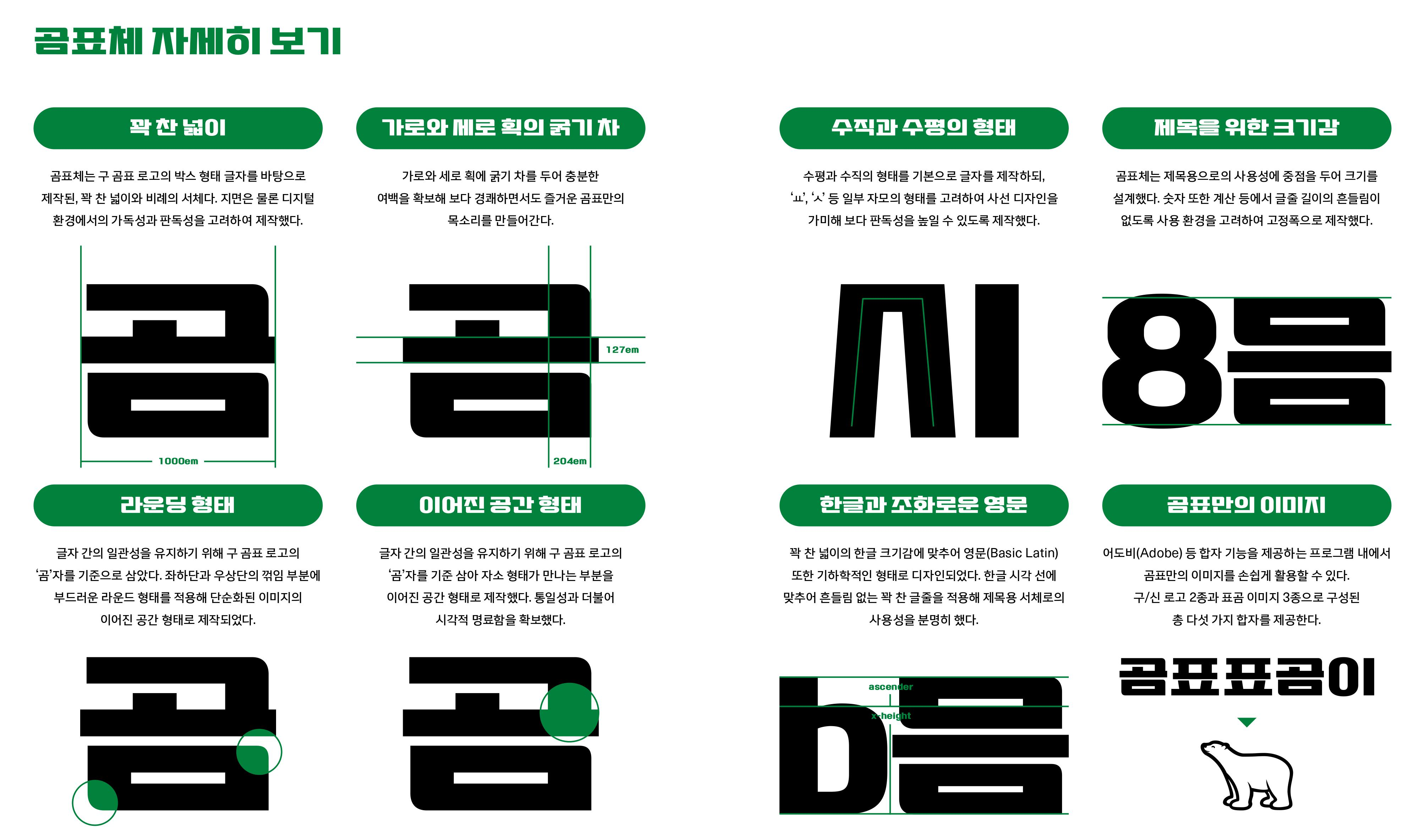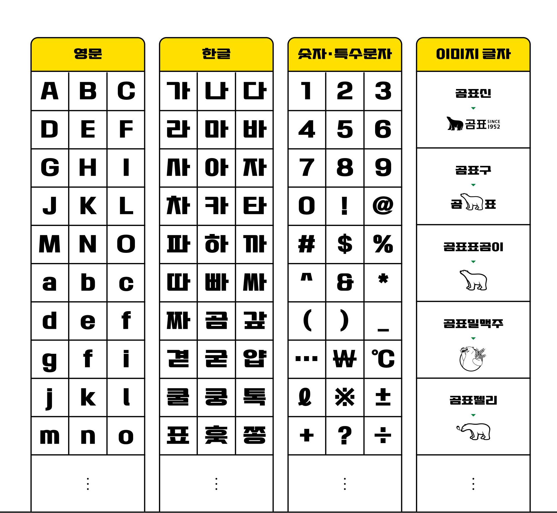 곰표체를 소개하는 마이크로 사이트를 별도 개발해 폰트 제작 스토리를 누구나 쉽고 재미있게 접할 수 있도록 했다. 특히 곰표가 MZ세대에게 전하고 싶은 건강한 대화는 ‘표곰이 토크콘’을 통해 만나볼 수 있도록 구성했다. 표곰이 토크콘은 ‘콘트(CONT)’ 서비스로 제작한 것으로 재치와 온기를 겸비한 콘트를 직접 생산하고 내려받을 수 있다. 이로써 곰표가 뉴트로 열풍에 이은 수다 열풍을 만들어나갈 것을 기대한다. · · · to be continued