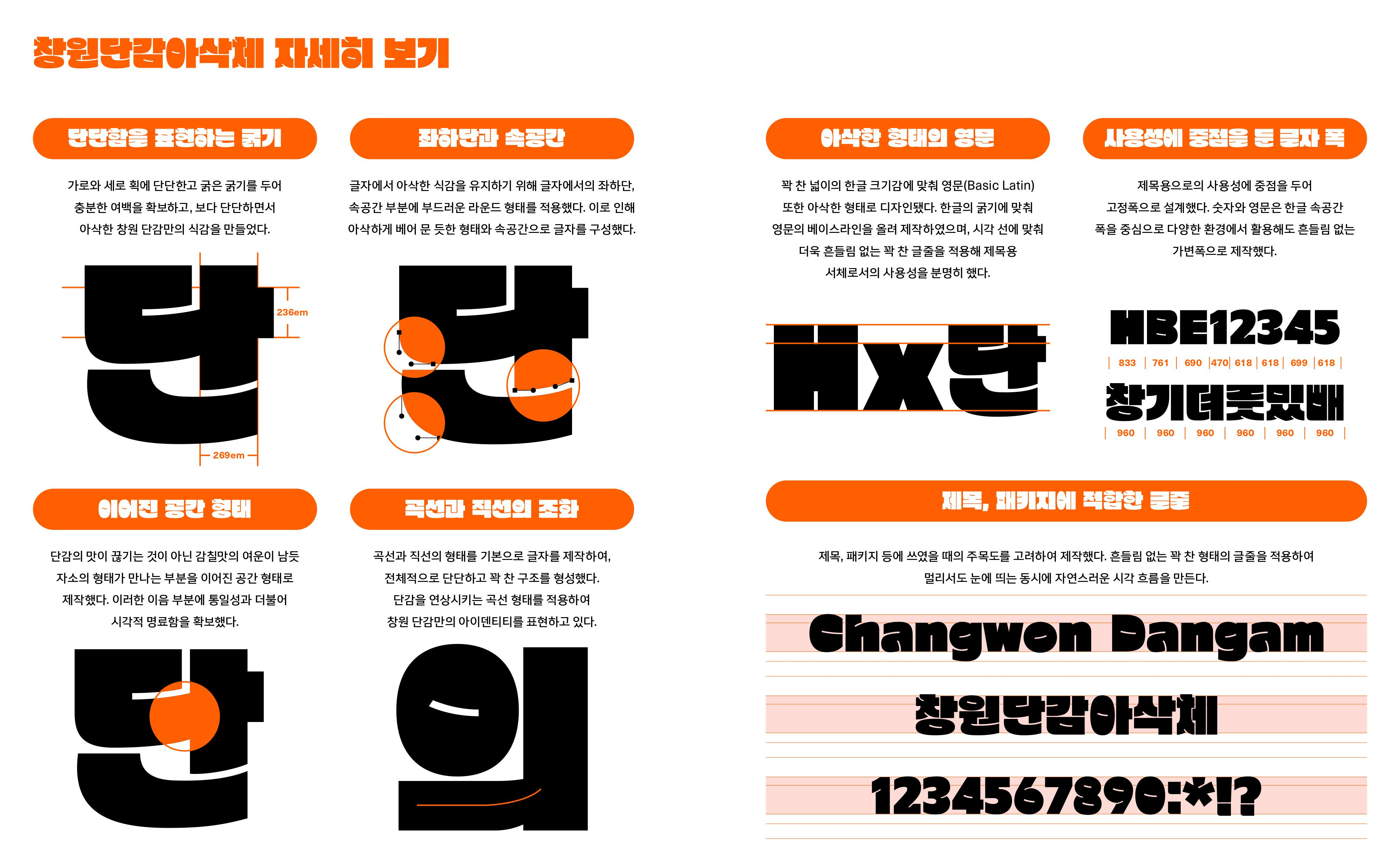 그리고 사용자의 관심을 불러일으키고 공감할 수 있도록 국내 최대 폰트 온라인 스토어 폰코(FONCO)의 고객들을 대상으로 개발된 서체 시안에 대한 선호도 조사를 실시했다. 그중 창원단감아삭체가 최고 평점을, 취향저격이라는 피드백을 29.8% 받으며 젊은 층의 지지를 받았다.