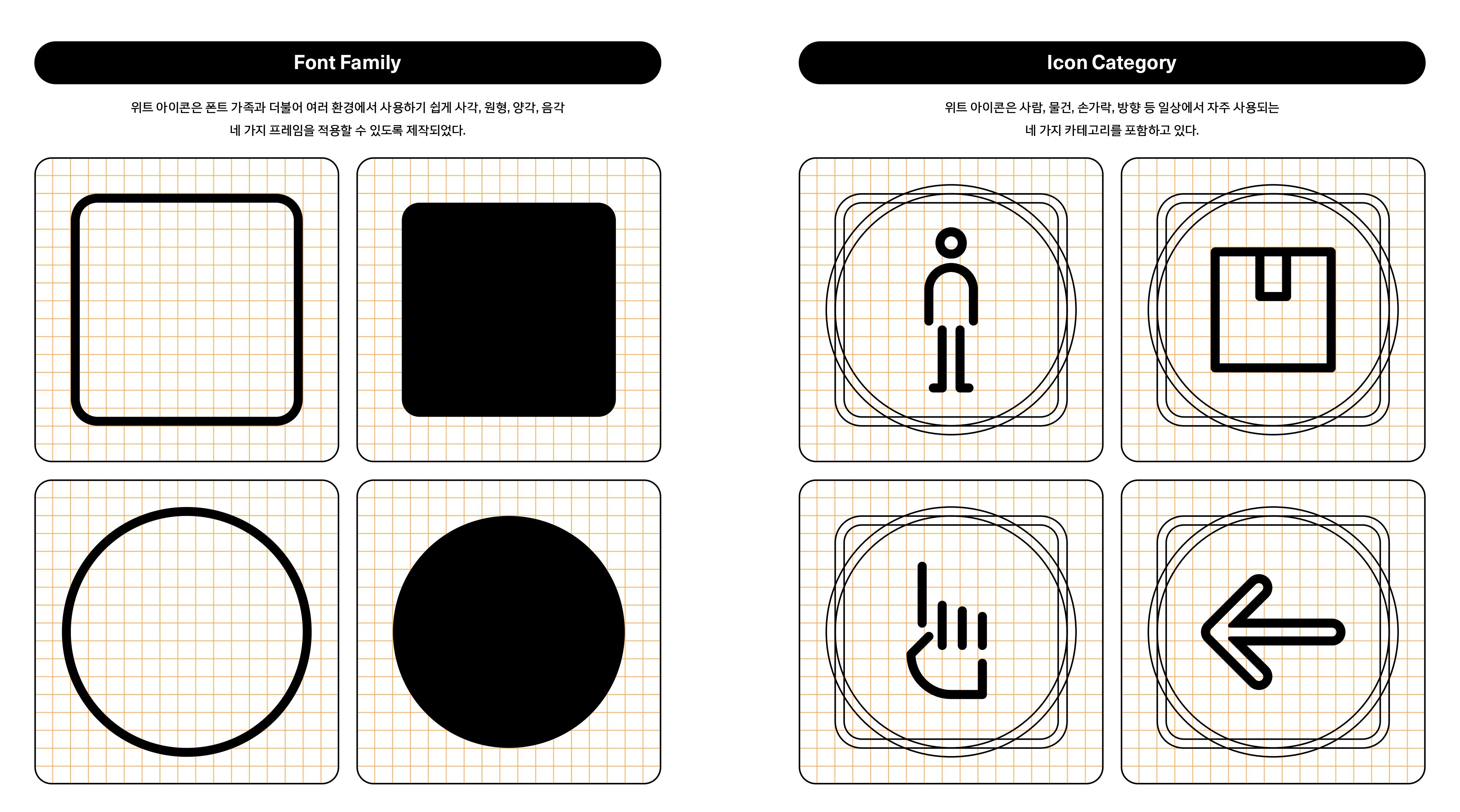 designer’s note ― “저는 파워 야근 디자이너였습니다. 리플릿을 작업할 때 수많은 픽토그램(아이콘)을 그리는 데에 많은 시간을 보냈습니다. 위트 아이콘은 제가 서체 회사로 이직 후, 많은 그래픽 디자이너들이 아이콘 그리다 야근하지 않고, 폰트로 ‘툭’ 치고 디자인을 끝낼 수 있는 경험을 드리고자 기획했습니다. 때마침 주 52시간 근무가 사회적 이슈가 되었고, ‘5월 1일 노동자의 날 폰트’라는 닉네임을 기대하고 있습니다. 파워 야근러 디자이너들이 웃으며 퇴근하기를 기대하며 ‘위트 아이콘’이라고 작명했습니다.”