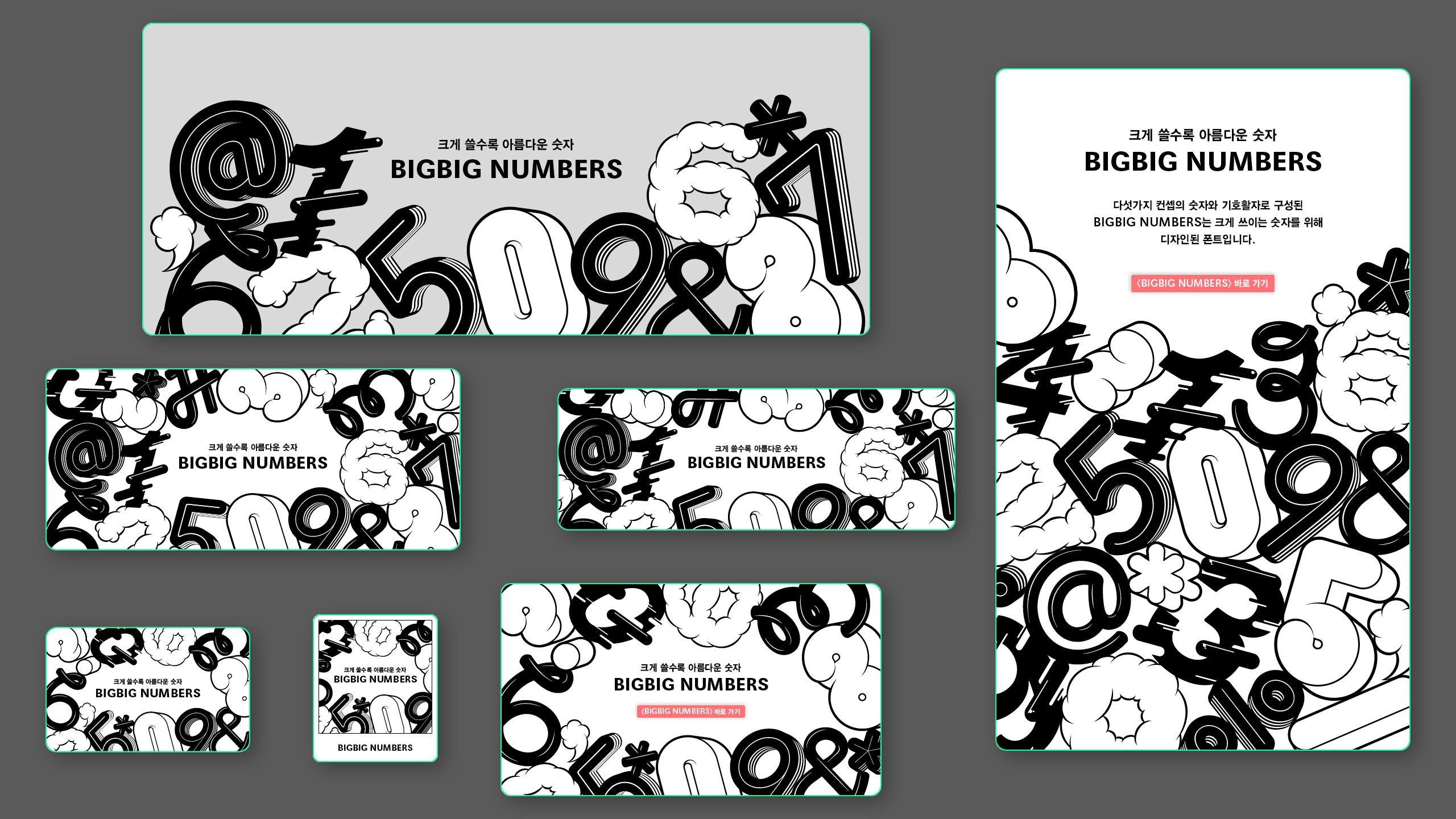 designer’s note ― “언제나 수학은 어렵습니다. 뭔가, 그 숫자들이 다가올 때의 공포감(?). 맞습니다. 전 ‘수포자’ 출신입니다. 저에게 있어 수학의 근본, ‘숫자’가 반갑게 다가온 적은 유년 시절 신체검사일에 아주 짧게 스쳐가는 색맹 검사지였습니다. ‘산수 교과서에 있던 숫자만이라도 말랑말랑했으면, 난 수포자가 되지 않았을지도 몰라!’라는 생각에서 시작한 프로젝트, 바로 빅빅 넘버스입니다. 숫자를 크게 프린트해서 여기저기 붙여보세요. 파티에도, 세일 안내판에도, 그리고 운동복 백넘버로도 쓸 수 있습니다.”