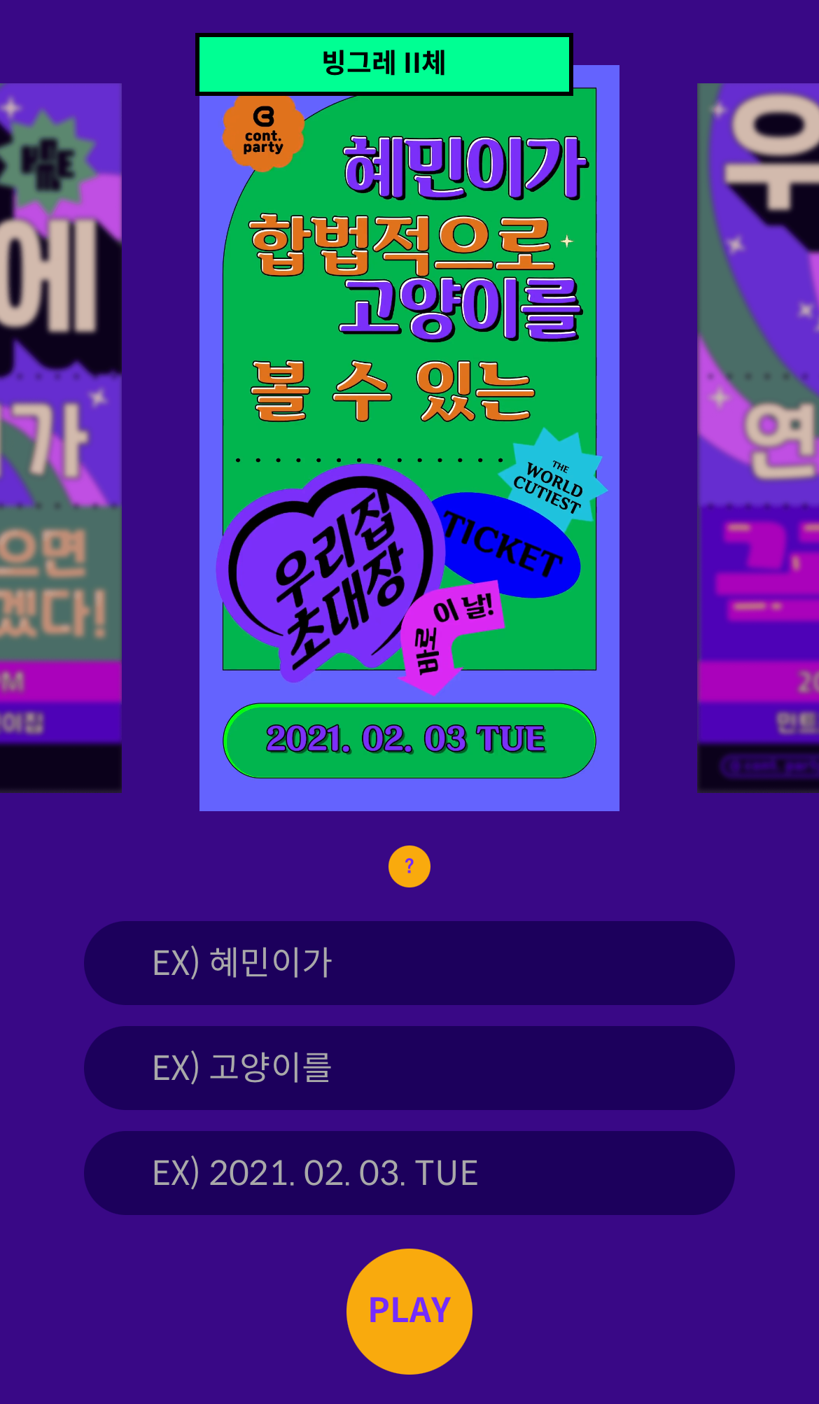이미지화된 글자는 우리의 대화를 자유롭고 풍성하게 만들어 줄 것이다. 글자로 다른 방식의 소통을 만드는 것. 이것이 엉뚱상상이 상상하는 글자의 또 다른 역할 중 하나다. 현재 콘트 사이트(cont.party)에 모바일로 접속하면 콘트들이 당신을 반기고 있을 것이다. 커스터마이징하는 메시지콘, 티켓콘, 명함콘을 당신에게 보낸다.