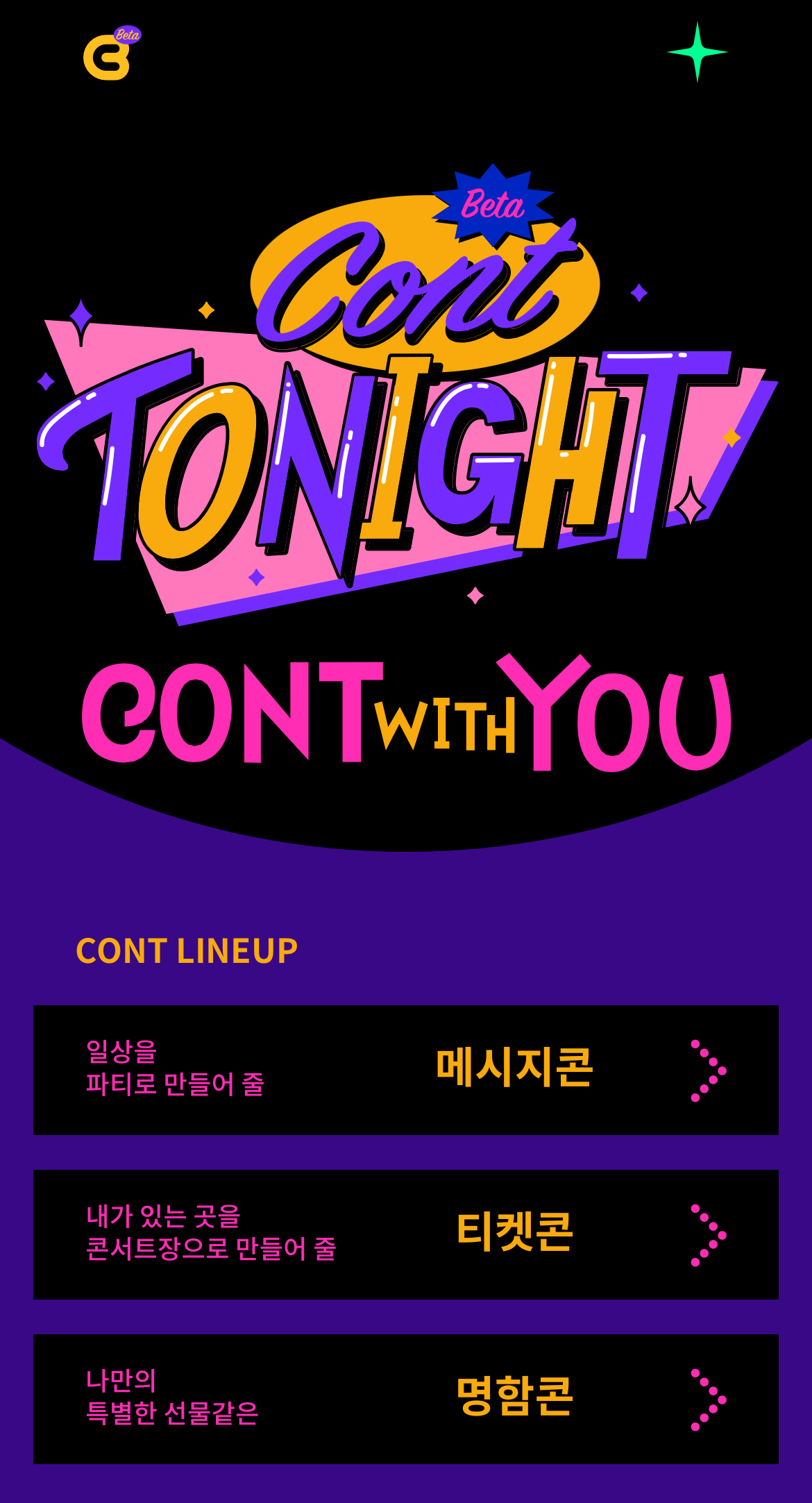 콘트의 콘셉트는 디스코 파티로 ‘콘투나잇’이라는 슬로건을 사용합니다.