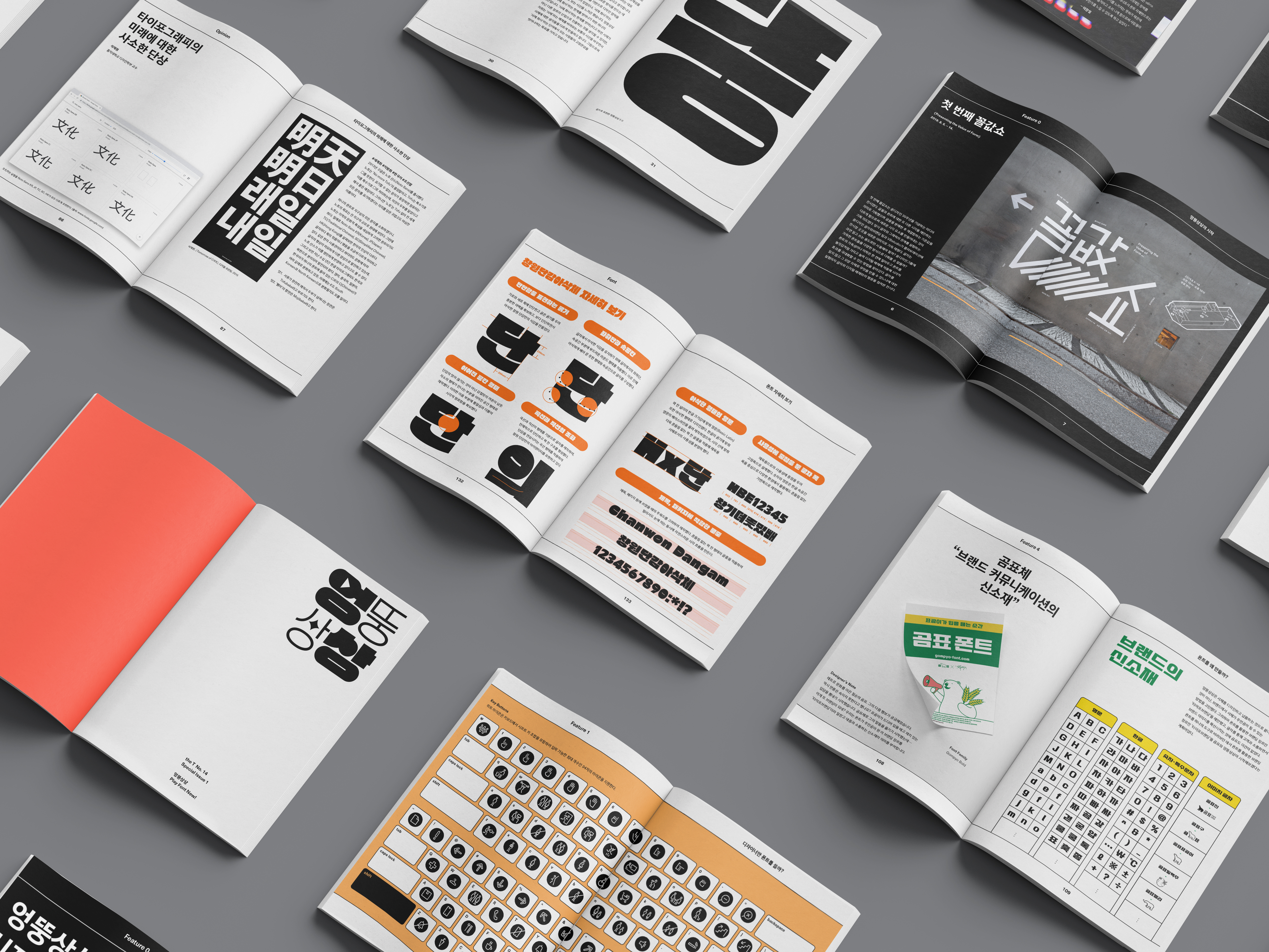 이때부터 제가 가지고 있던 서체, 타이포그래피에 대한 사고방식이 잘못되었던 것이고, 각 환경에 맞는 타이포그래피가 존재해야 한다는 것을 알게 되었습니다. 이후로 서체를 기획할 때, 기존에 내가 쓰던 환경(지면, 본문)을 제외한 상황에서는 필요한 다른 글자를 고민하게 되었고, 서체를 바라보는 시선을 바꿔야 한다는 생각이 그때부터 시작되었습니다.