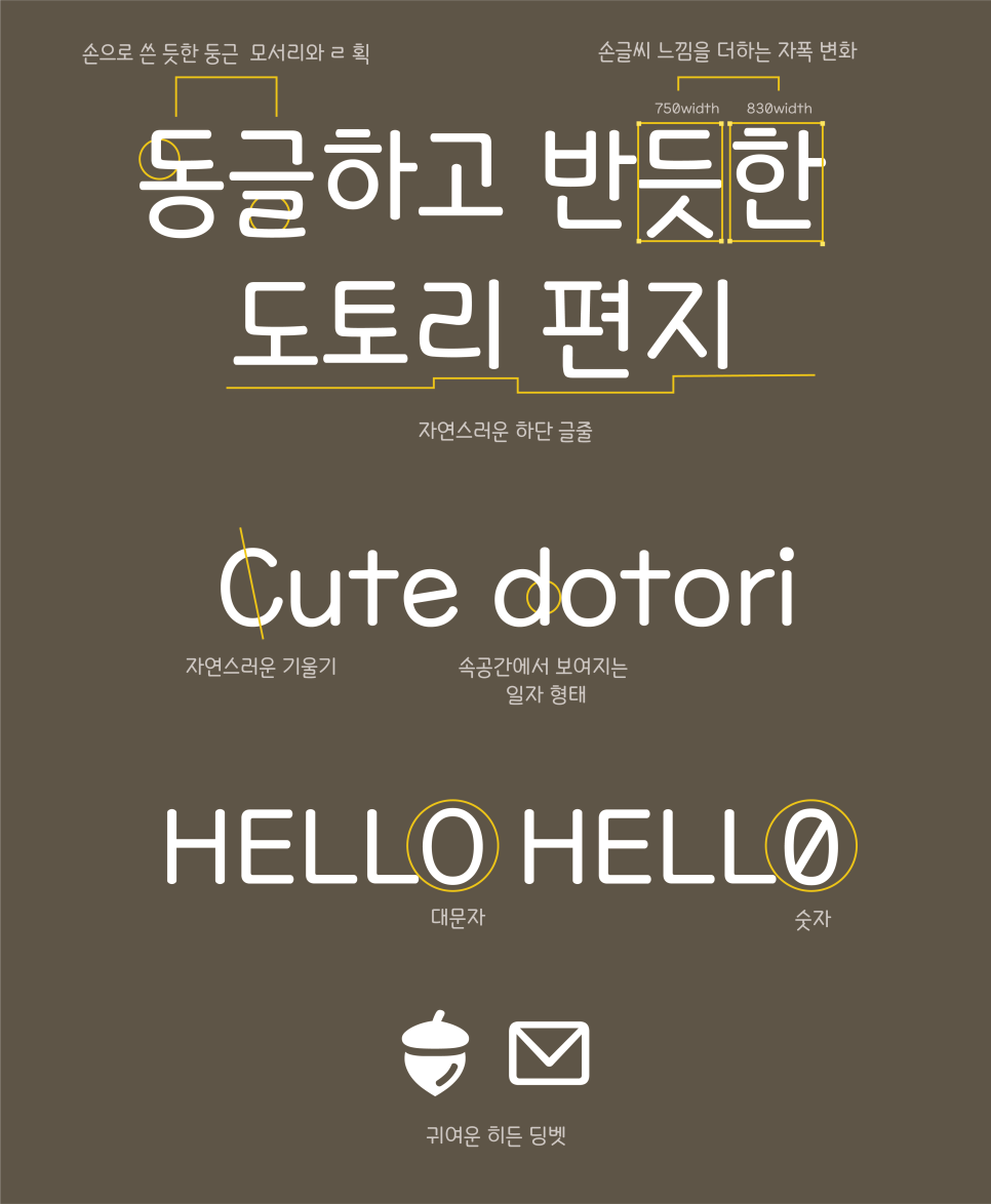 윤디자인그룹의 플립폰트들은 모두 ‘YD’라는 패밀리네임을 갖고 있어요. ‘YD공병각soft’, ‘YD햇살2’, ‘YD도토리편지’처럼요. 윤디자인그룹의 모바일 폰트 브랜드 ‘YD플립폰트’ 라인이라는 의미랍니다.