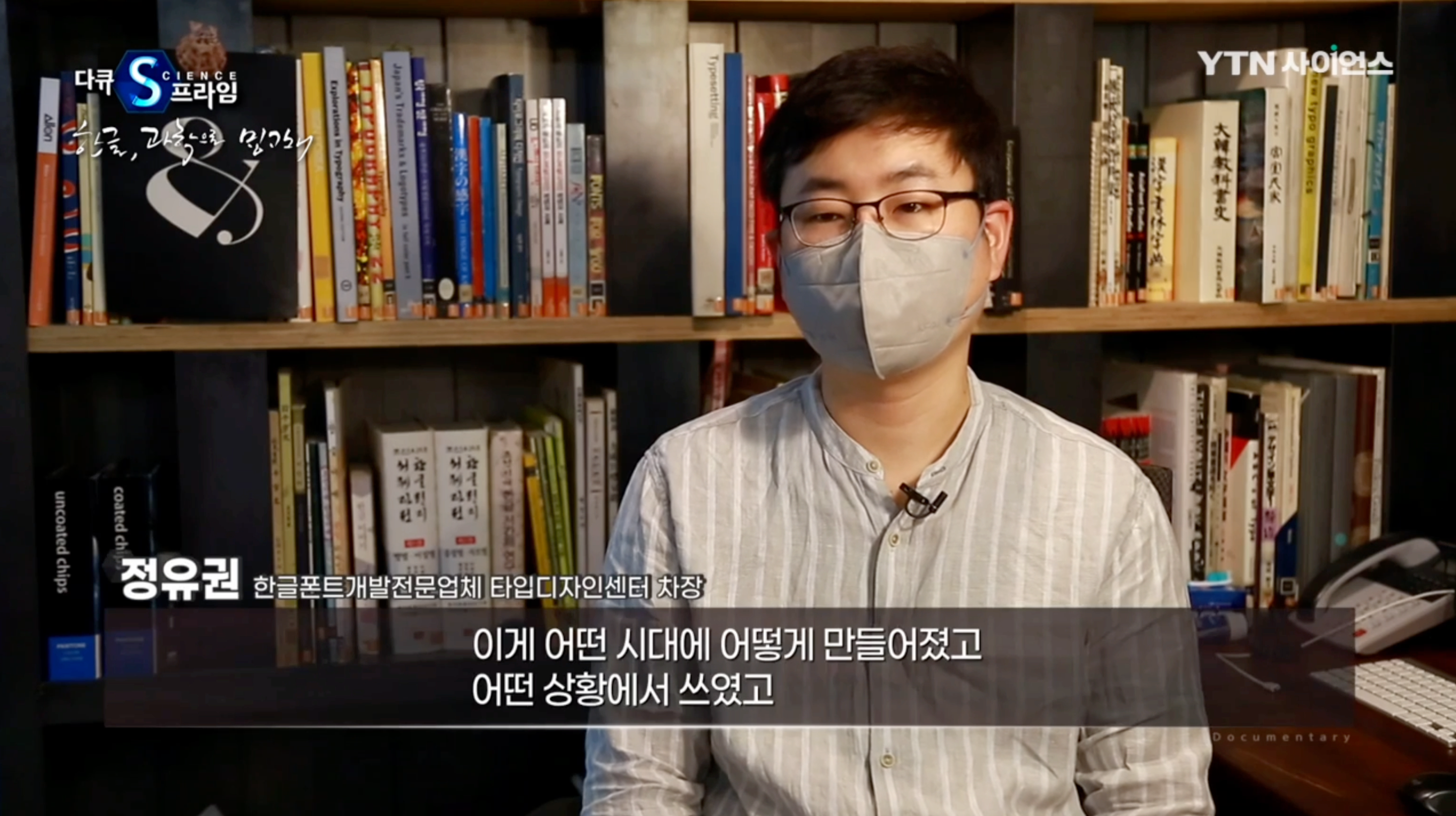 폰트 디자이너 정유권, 〈다큐 프라임 ― 한글, 과학으로 맹가노니〉(2021. 10. 7. 방송) 중