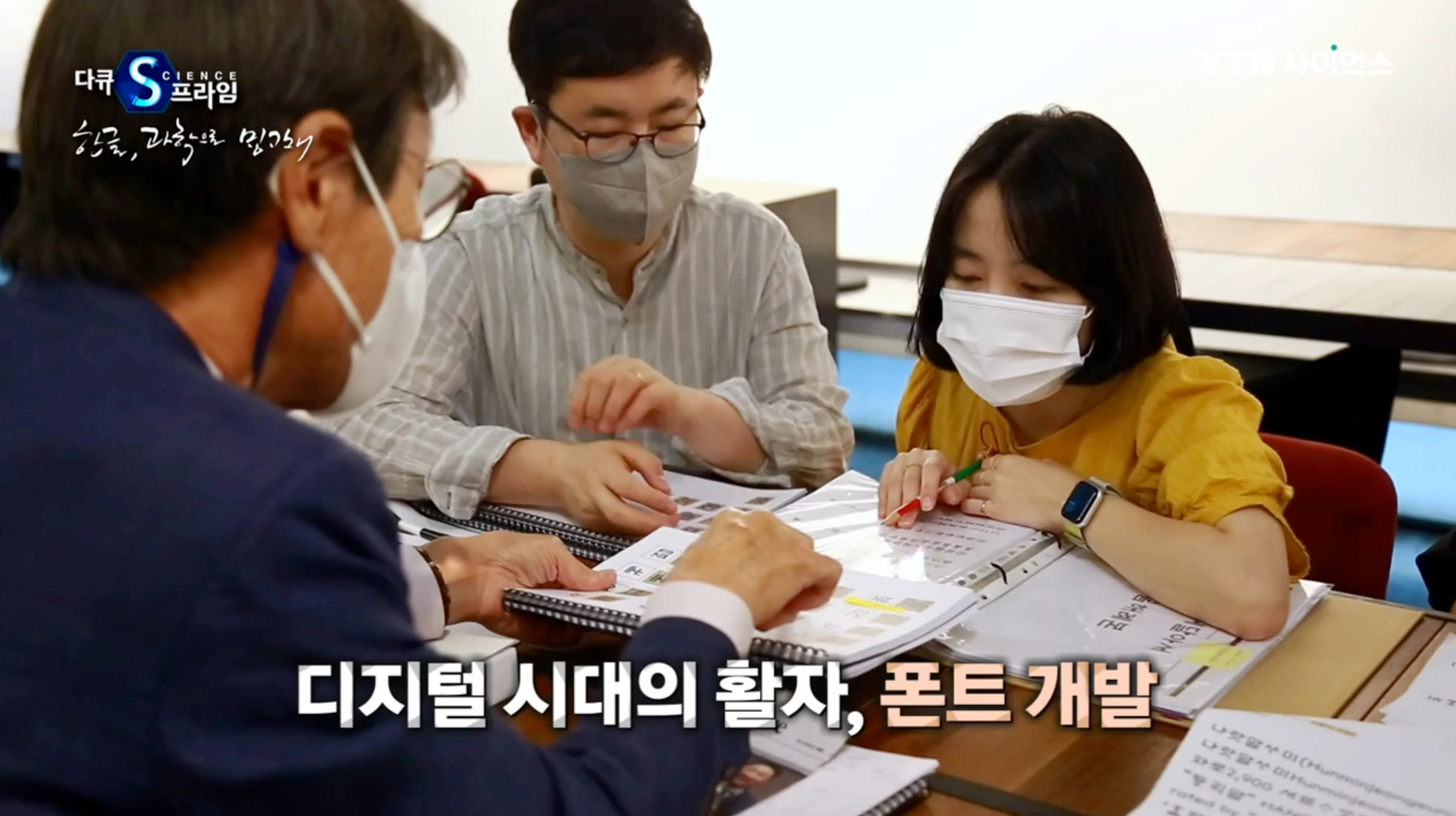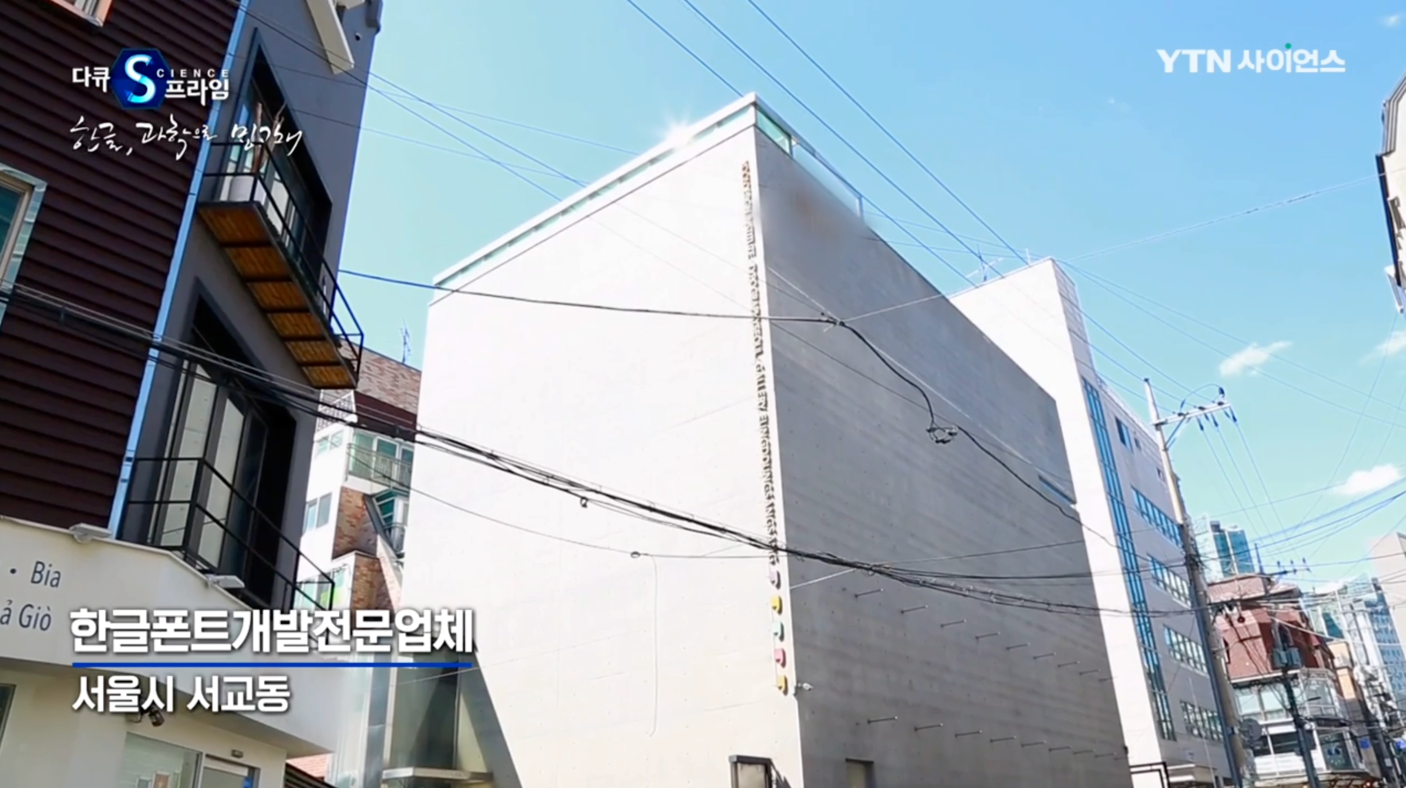 과학 전문 채널 ‘YTN 사이언스’의 프로그램 〈다큐 프라임〉에 윤디자인그룹(회장 편석훈)이 출연했습니다. 제575돌 한글날(2021년 10월 9일)을 기념한 방송 〈다큐 프라임 ― 한글, 과학으로 맹가노니〉 편에 ‘한글 폰트 개발 전문 업체’로 소개된 것이죠.