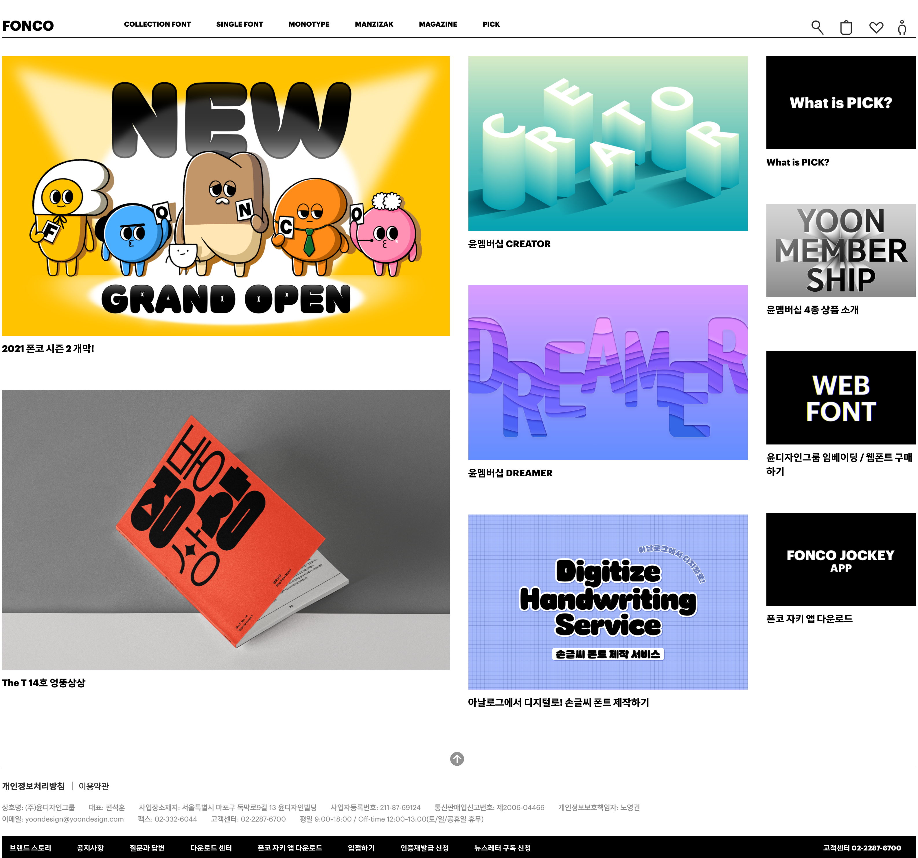 윤디자인그룹의 폰트 마켓 폰코(FONCO)가 2021년 11월 1일 리뉴얼 오픈과 함께 시즌 2를 시작했습니다. 나만의 폰트 생활을 시작하는 즐거운 놀이터, 라는 슬로건과 함께 누구나 즐길 수 있는 폰트의 대중 문화를 만들어갈 계획입니다. 다섯 가지 테마를 통해 새로워진 폰코를 소개해드립니다.