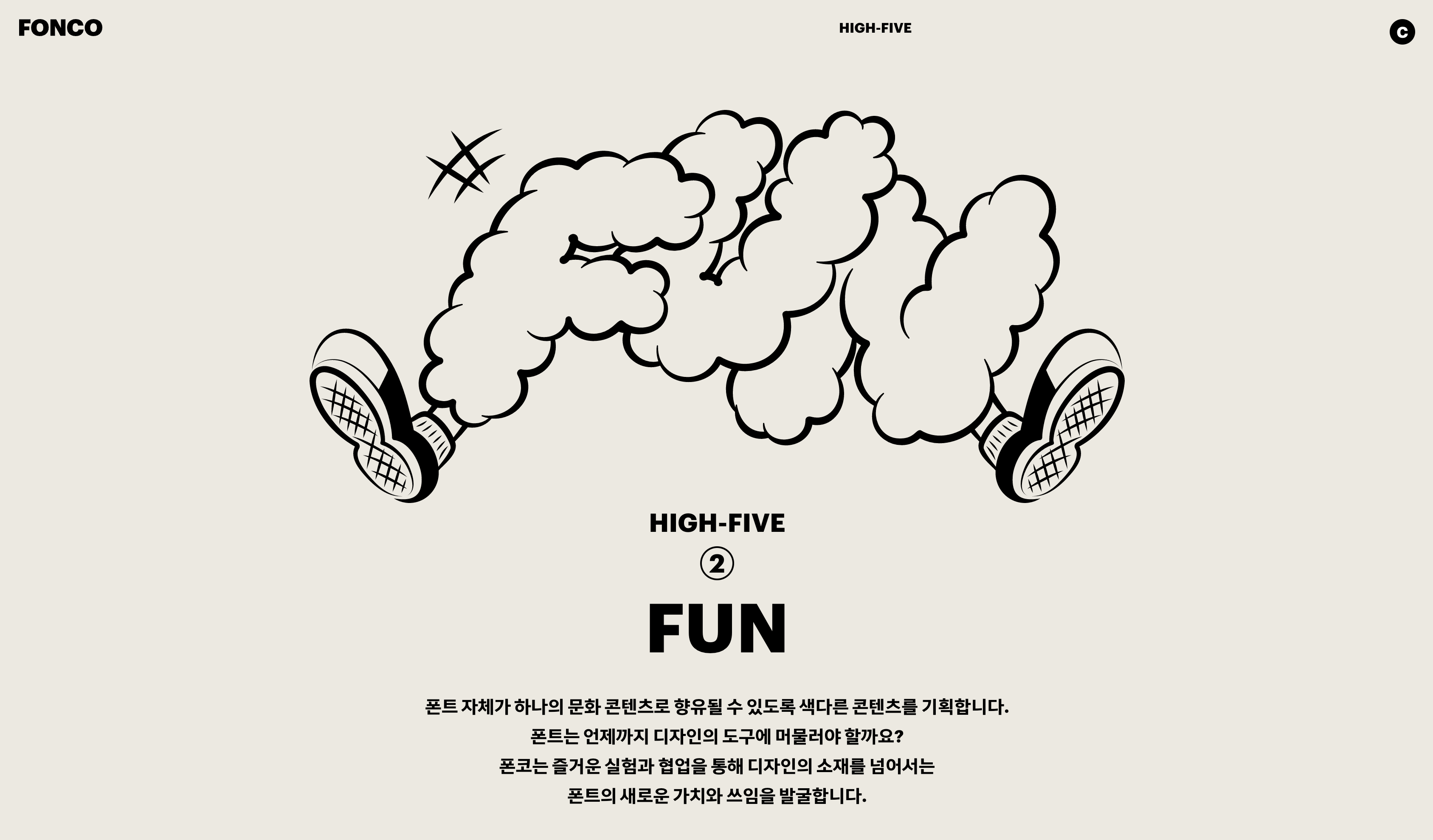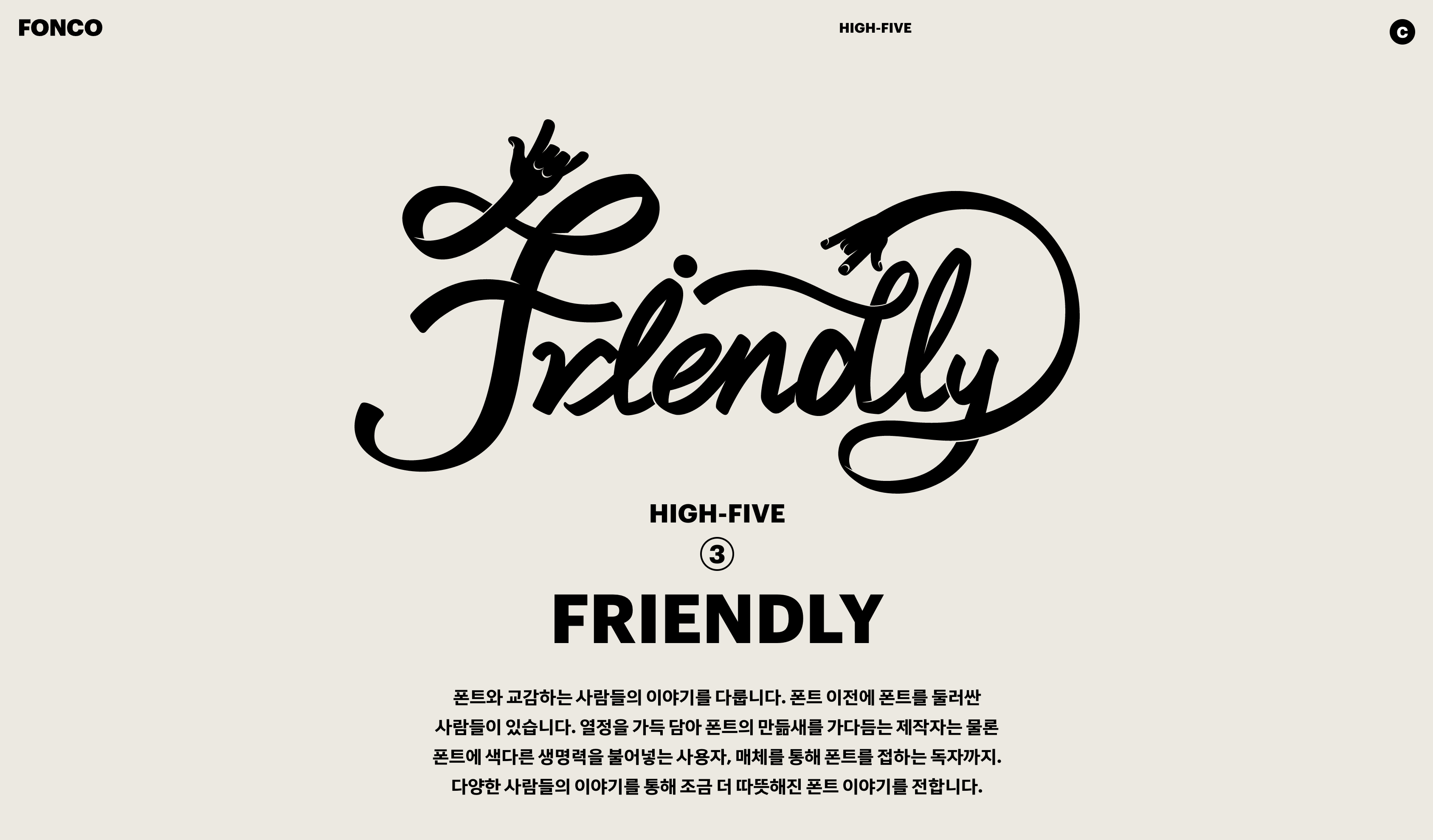 시즌 2를 시작하며 폰코는 공약을 내놓았습니다. 무려 다섯 가지, HIGH-FIVE! 이 다섯 가지 공약을 성실히, 그리고 즐겁게 이행하면서 여러분과의 유쾌한 폰트 라이프스타일을 실천해나갈 것을 약속드립니다.