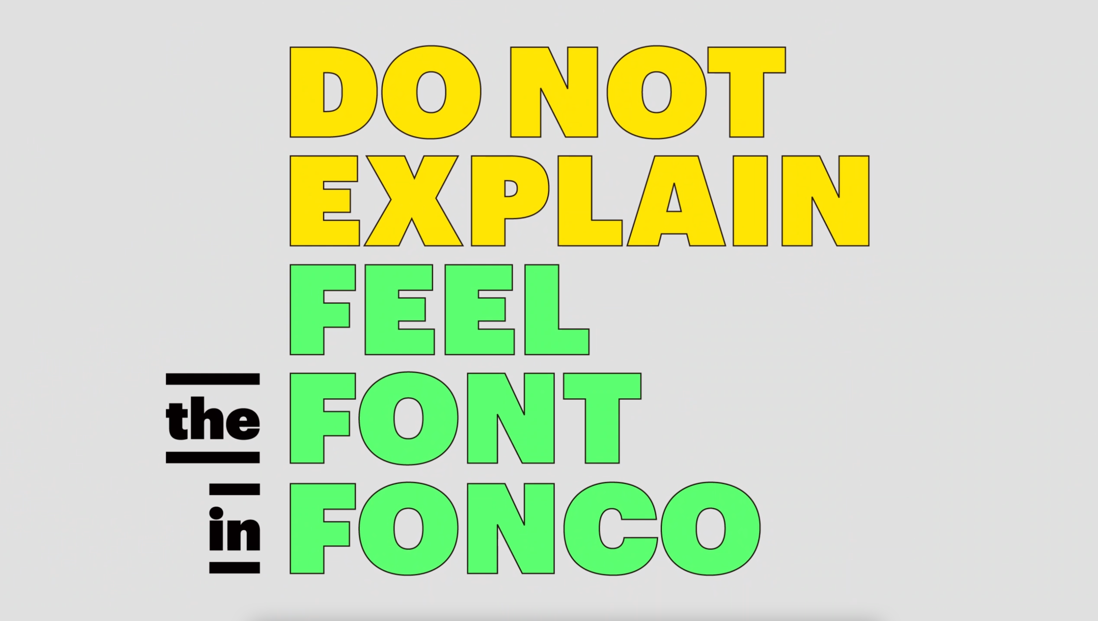 Do Not Explain. Just Feel the Font! 폰트를 둘러싼 맥락을 즐겁게 뒤바꾸는 상상, 폰코! 폰트는 디자이너의 전유물이라는 고정관념, 몇 종, 얼마, 라이선스 범위 등 폰트를 둘러싼 딱딱한 맥락들, 폰트는 전문 영역이라는 편견들, ···. 이 모든 걸 폰코가 쉽고 재미있게 바꿔보려 합니다.
