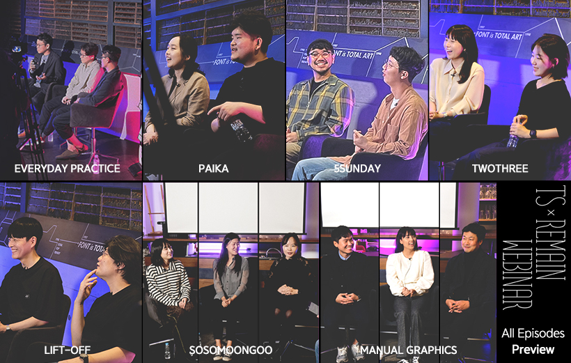 〈TS × Remain Webinar〉는 매달 국내 디자인 스튜디오/브랜드 한 팀의 세미나를 VOD 콘텐츠로 선보이는 프로젝트다. 디자인 교육 콘텐츠 플랫폼 ‘리메인(Remain)’과 공동 제작으로, VOD 일곱 편을 다달이 공개했다. 7개월간(2021년 6~12월)의 릴레이 VOD 세미나였던 셈이다.