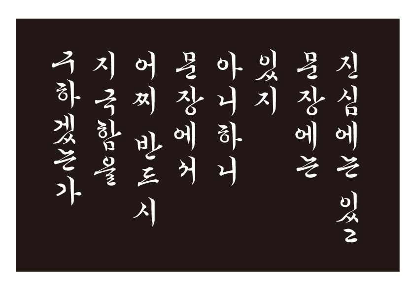 프로젝트를 진행하면서 궁서 흘림을 연구하다 보니, 흘림체만의 고유한 형태가 있다는 걸 배웠어요. 복원도를 결정하면서 내부적으로 궁서 흘림에 대한 판독성 조사를 진행했었는데, 서예를 전공한 친구도 완전히 판독해내지는 못하더라고요. 그만큼 궁서 흘림을 폰트로 복원하는 작업이 쉽지 않았습니다.