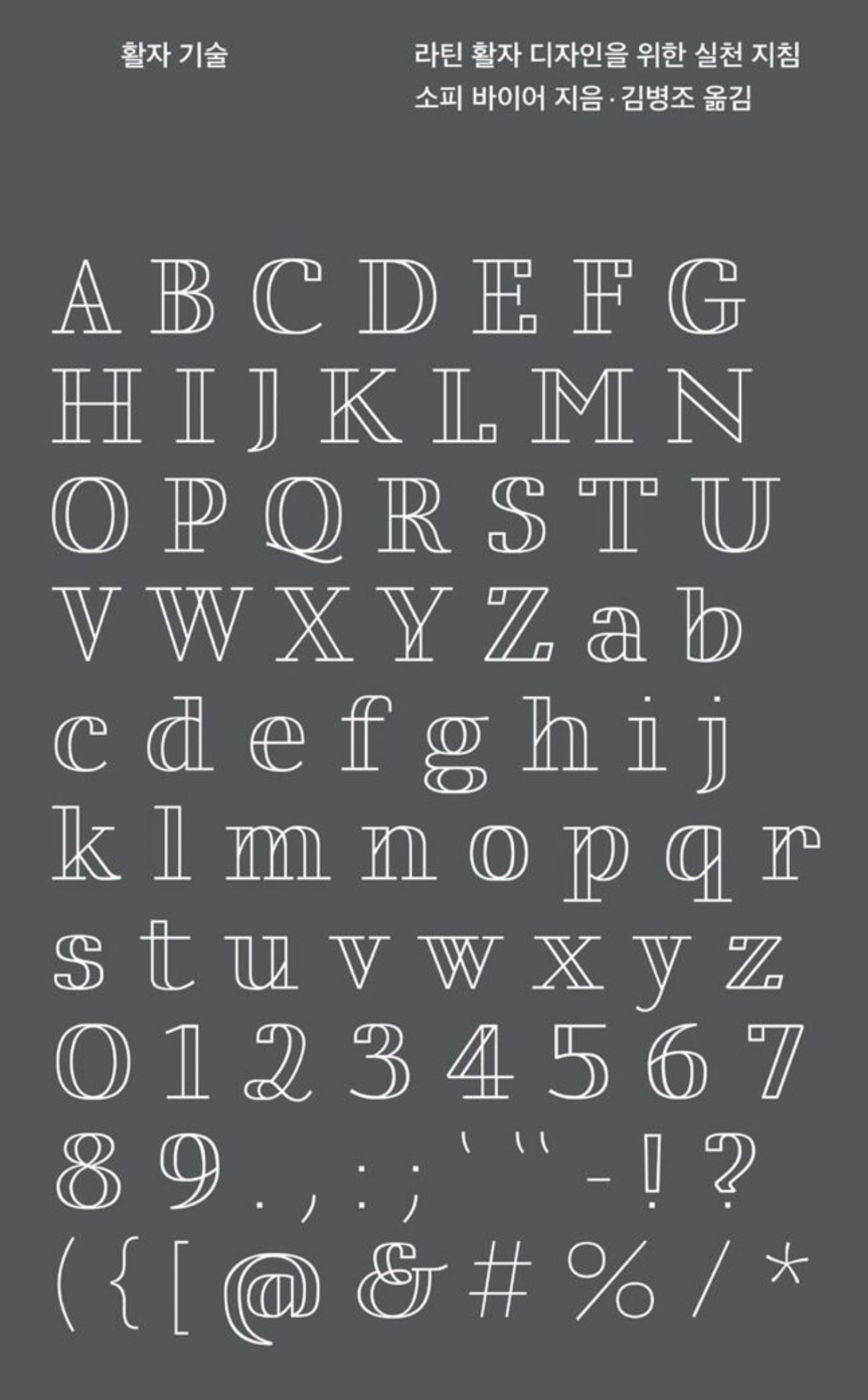 두 번째는 소피 바이어의 『활자 기술: 라틴 활자 디자인을 위한 실천 지침』입니다. 제가 라틴 알파벳 그릴 때 많은 도움을 얻는 책이에요. ‘실전 지침’이라는 부제에 걸맞게 실제로 그릴 때 주의해야 할 점을 직관적인 그래픽으로 보여줘서 좋습니다.