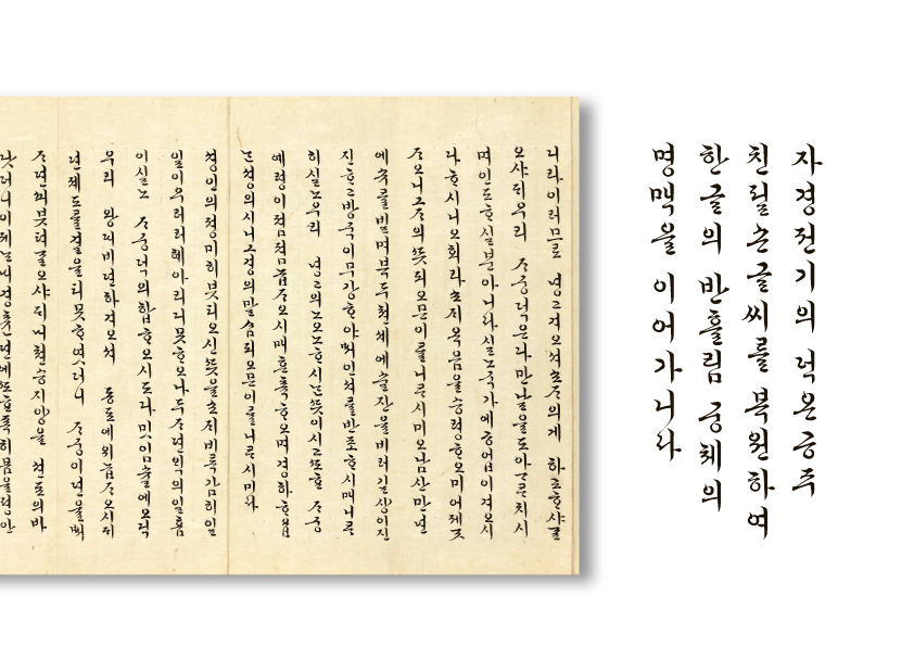 덕온공주체 복원 프로젝트를 꼭 소개해드리고 싶어요. 그동안 제가 개발했던 전용서체들은 주로 고딕 형태였거든요. 덕온공주체 같은 ‘궁서체’를 개발할 기회는 많지 않았어요. 게다가 ‘복원 서체’라서 더 욕심났던 프로젝트였습니다.