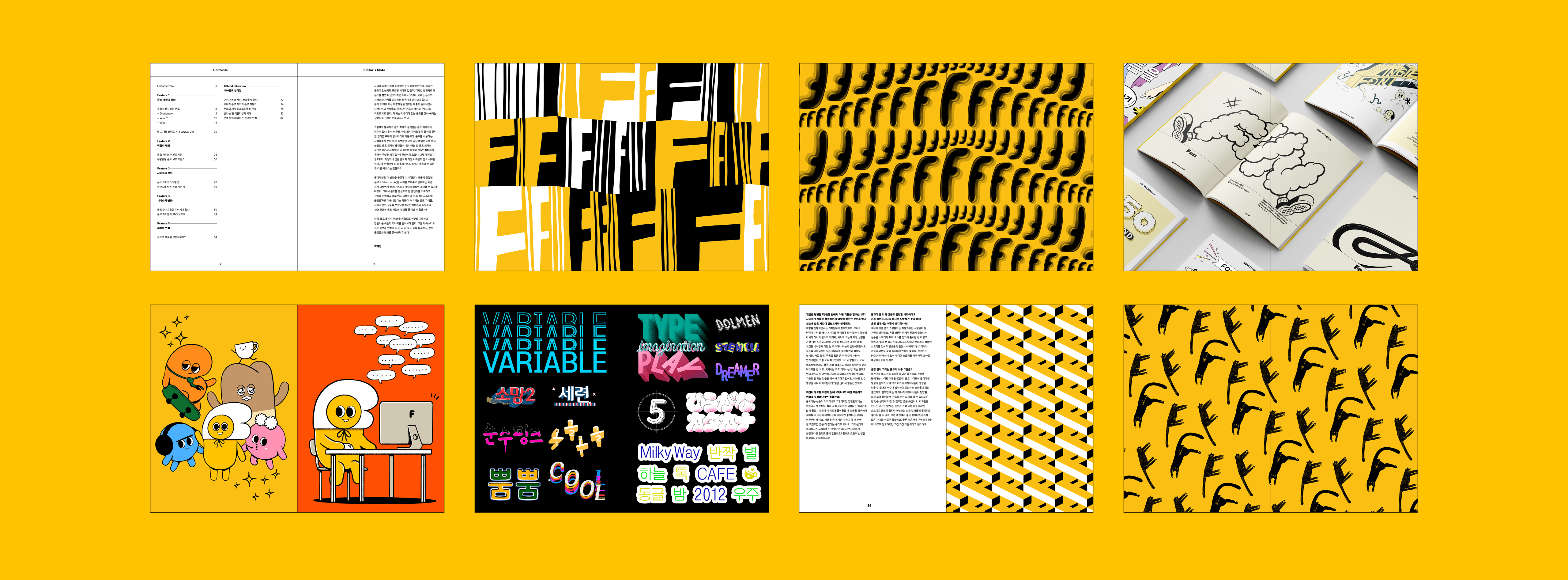 위 여섯 챕터의 내용을 간략히 요약하면 아래와 같습니다. 폰트 마켓 겸 문화 플랫폼을 추구하는 폰코 2.0의 비전, 그리고 윤디자인그룹만의 폰트’관’이 농축되어 있는데요. 이번 《the T》 15호의 구성과 전개가 한눈에 들어오시죠?