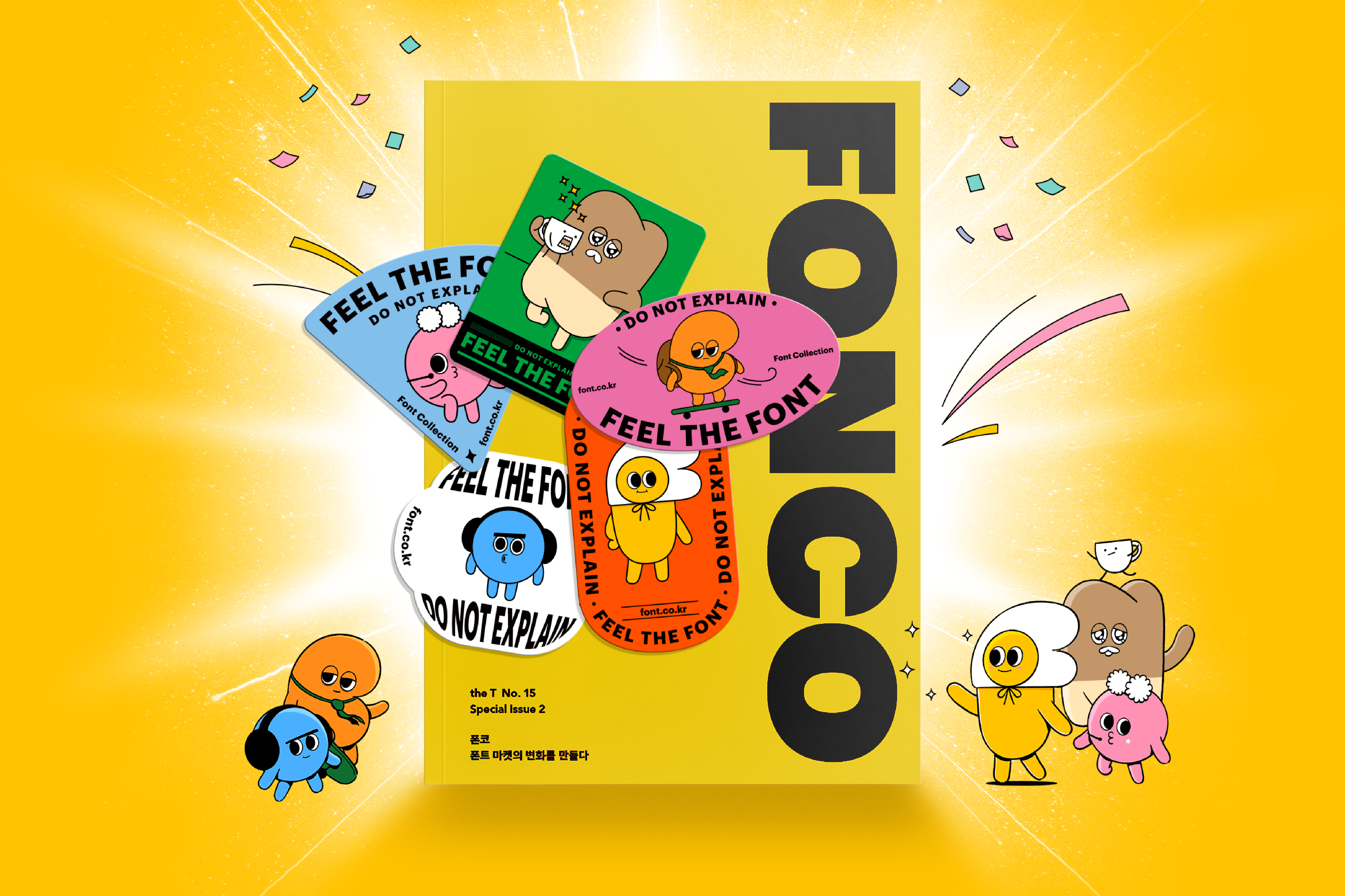 폰트가 누구나의 일상과 가까워짐에 따라, 디자이너들의 도구였던 폰트는 점차 ‘일상 아이템’이 되어가고 있어요. ‘폰트로 나를 표현하는’ 일이 이젠 익숙해졌으니까요. 일례로 안드로이드 스마트폰의 ‘플립폰트(Flip Font)’를 꼽을 수도 있을 것입니다. 폰코 2.0은 이렇듯 폰트로 나를 표현하는 문화, 즉 우리의 ‘폰트 라이프스타일’을 가꾸는 플랫폼으로 커가는 중입니다. 매거진 《the T》 15호를 통해 폰코 2.0에 대한 모든 것, 그리고 폰트 시장의 거대한 트렌드 흐름을 한 번에 읽어보시면 어떨까요.