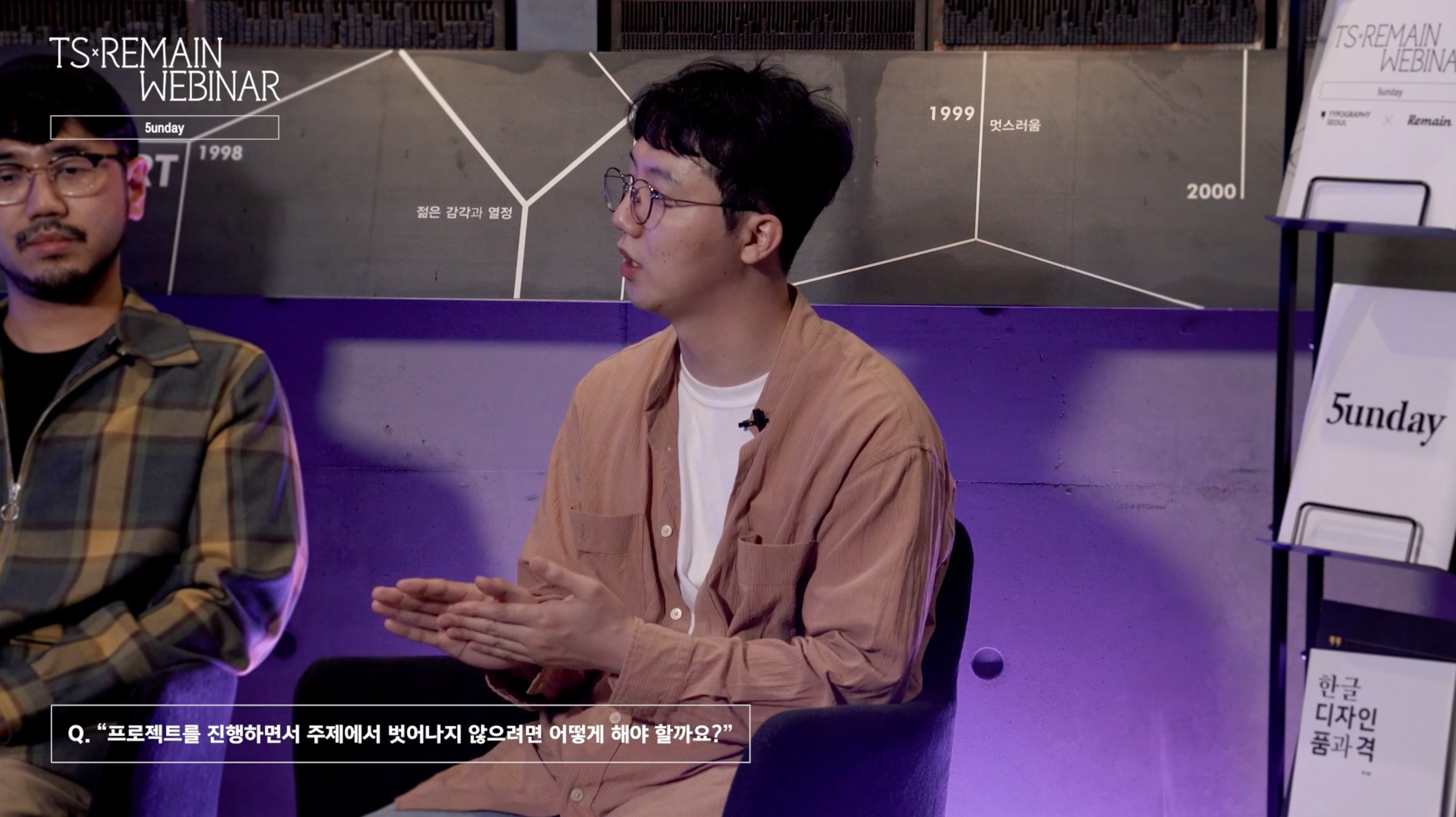 〈TS × Remain Webinar〉는 윤디자인그룹이 운영하는 디자인 웹진 『타이포그래피 서울』이 기획하고, 디자인 교육 콘텐츠 플랫폼 ‘리메인(Remain)’이 공동 제작한 릴레이 세미나 콘텐츠입니다.